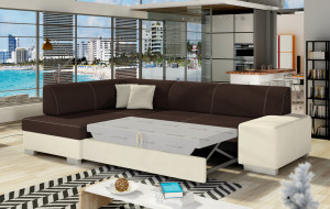 Dotaz na produkt Na splátky ještě dnesFabio je stylová, multifunkční rohová pohovka se stabilní konstrukcí ve tvaru L, která vám bude sloužit po mnoho let. S rozměry 268 x 167 x 73 cm zaručuje maximální pohodlí pro denní relaxaci. Díky rozkládacímu mechanismu typu delfín je pohovka Fabio ideální i pro noční odpočinek. Plocha na spaní o rozměrech 195 x 125 cm zajišťuje dlouhý a klidný spánek. Dalším prvkem tohoto modelu je prostorný prostor na ložní prádlo. Sedák je vyroben z vysoce pružné pěny s vlnitými pružinami, které dohromady poskytují vynikající oporu tělu a zároveň zabraňují nevzhledným promáčklinám a deformacím. Při výběru rohové pohovky Fabio je třeba věnovat pozornost jejímu geometrickému designu inspirovanému New Yorkem, dekorativním polštářům, které jsou součástí sady, a široké škále dostupných barevných možností čalounění. Fabio je kompaktní a praktický kus nábytku, ideální do každého obytného prostoru.Látky: Sawana 26, Soft 33