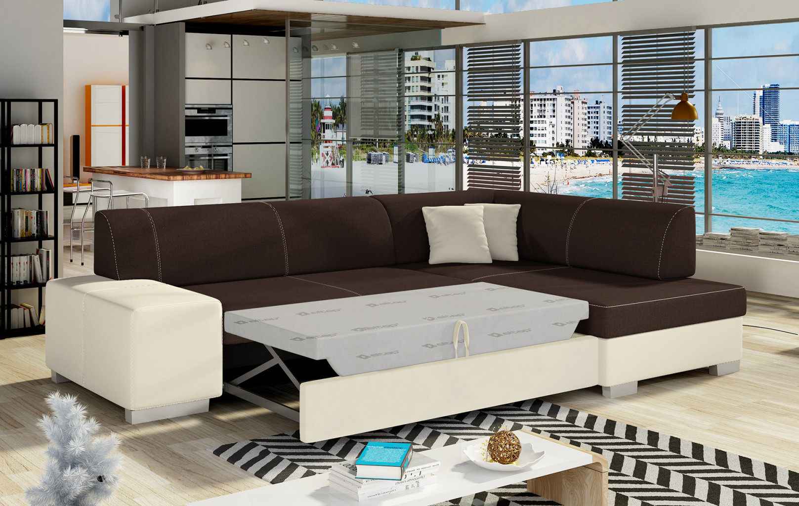 Dotaz na produkt Na splátky ještě dnesFabio je stylová, multifunkční rohová pohovka se stabilní konstrukcí ve tvaru L, která vám bude sloužit po mnoho let. S rozměry 268 x 167 x 73 cm zaručuje maximální pohodlí pro denní relaxaci. Díky rozkládacímu mechanismu typu delfín je pohovka Fabio ideální i pro noční odpočinek. Plocha na spaní o rozměrech 195 x 125 cm zajišťuje dlouhý a klidný spánek. Dalším prvkem tohoto modelu je prostorný prostor na ložní prádlo. Sedák je vyroben z vysoce pružné pěny s vlnitými pružinami, které dohromady poskytují vynikající oporu tělu a zároveň zabraňují nevzhledným promáčklinám a deformacím. Při výběru rohové pohovky Fabio je třeba věnovat pozornost jejímu geometrickému designu inspirovanému New Yorkem, dekorativním polštářům, které jsou součástí sady, a široké škále dostupných barevných možností čalounění. Fabio je kompaktní a praktický kus nábytku, ideální do každého obytného prostoru.Látky: Sawana 26, Soft 33