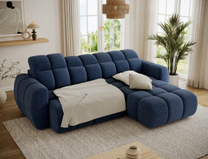 Dotaz na produkt Na splátky ještě dnesRohová pohovka Fanito je moderní, prostorná sedací souprava ve tvaru L určená do obývacího pokoje. Vyznačuje se pevnou, zaoblenou siluetou, hlubokým sedákem a segmentovaným prošíváním, které zdůrazňuje její designový a zároveň útulný charakter – ideální pro domácí relaxační zónu. Model má rozměry 288 × 200 × 105 cm a hmotnost 130,6 kg, což zajišťuje stabilitu a každodenní pohodlí. Výplň sedáku kombinuje vlnité pružiny typu B, vysoce pružnou pěnu HR3030 a prošívanou vatu o gramáži 150 g/m², což poskytuje pružnost, pohodlí a odolnost proti prohýbání, zatímco opěradlo je vyztuženo čalounickými popruhy a profilovanou polyuretanovou pěnou T2316 pro ergonomickou oporu zad. Jako spací sedací souprava nabízí praktickou spací plochu o rozměrech 85 × 232 × 47 cm a elektrické prodloužení sedáku (pohon) o 28 cm umožňuje rychle a bez námahy zvětšit plochu na odpočinek. Mechanismus opěrky hlavy s vratnou pružinou navíc umožňuje pohodlné nastavení opěrky hlavy, což z rohové pohovky Fanito dělá vynikající volbu pro každého, kdo hledá pohodlnou výsuvnou pohovku, která v sobě spojuje styl, funkčnost a vysokou kvalitu zpracování. Látky: Paolli 40