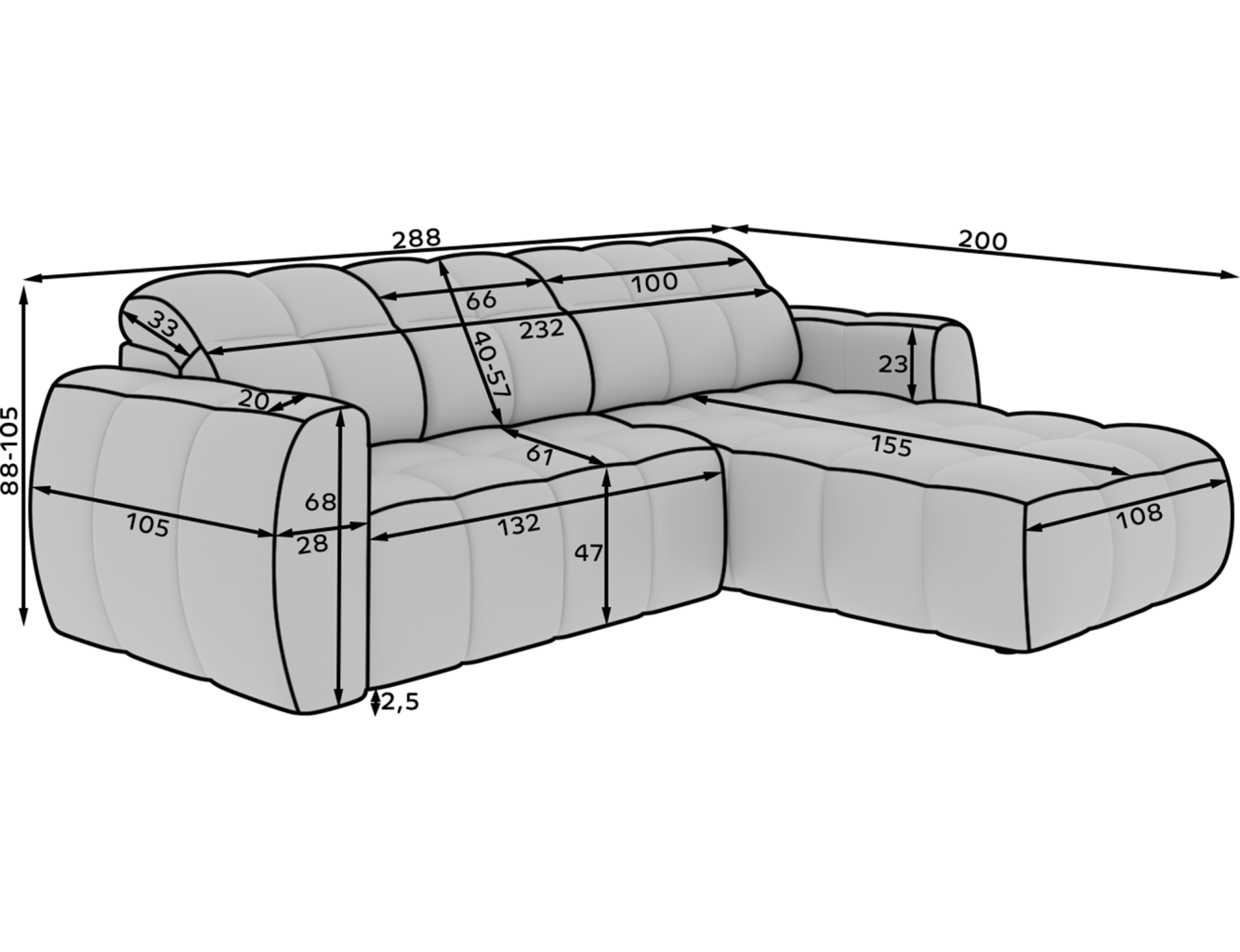 Šířka sedáku: 232