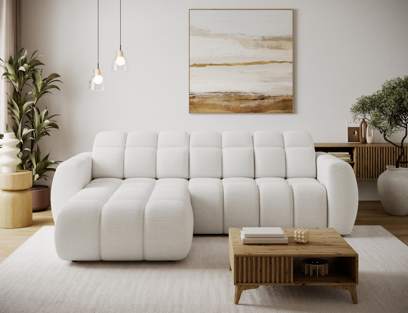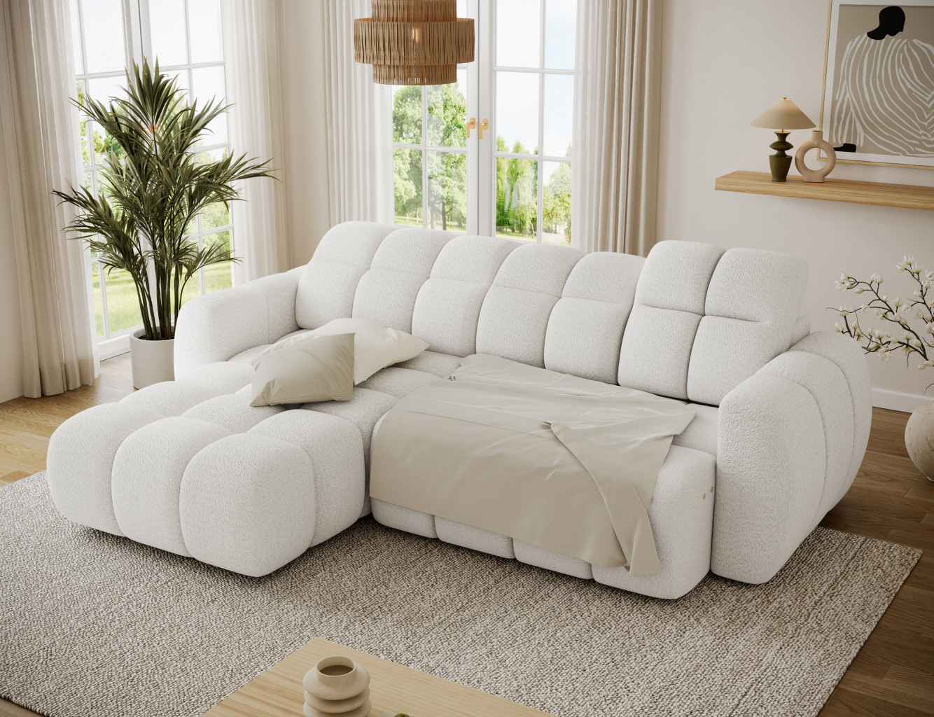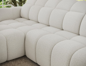 Dotaz na produkt Na splátky ještě dnesRohová pohovka Fanito je moderní, prostorná sedací souprava ve tvaru L určená do obývacího pokoje. Vyznačuje se pevnou, zaoblenou siluetou, hlubokým sedákem a segmentovaným prošíváním, které zdůrazňuje její designový a zároveň útulný charakter – ideální pro domácí relaxační zónu. Model má rozměry 288 × 200 × 105 cm a hmotnost 130,6 kg, což zajišťuje stabilitu a každodenní pohodlí. Výplň sedáku kombinuje vlnité pružiny typu B, vysoce pružnou pěnu HR3030 a prošívanou vatu o gramáži 150 g/m², což poskytuje pružnost, pohodlí a odolnost proti prohýbání, zatímco opěradlo je vyztuženo čalounickými popruhy a profilovanou polyuretanovou pěnou T2316 pro ergonomickou oporu zad. Jako spací sedací souprava nabízí praktickou spací plochu o rozměrech 85 × 232 × 47 cm a elektrické prodloužení sedáku (pohon) o 28 cm umožňuje rychle a bez námahy zvětšit plochu na odpočinek. Mechanismus opěrky hlavy s vratnou pružinou navíc umožňuje pohodlné nastavení opěrky hlavy, což z rohové pohovky Fanito dělá vynikající volbu pro každého, kdo hledá pohodlnou výsuvnou pohovku, která v sobě spojuje styl, funkčnost a vysokou kvalitu zpracování.Látka: Royal 01