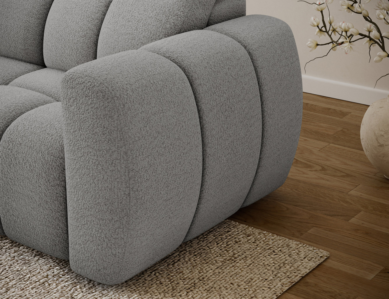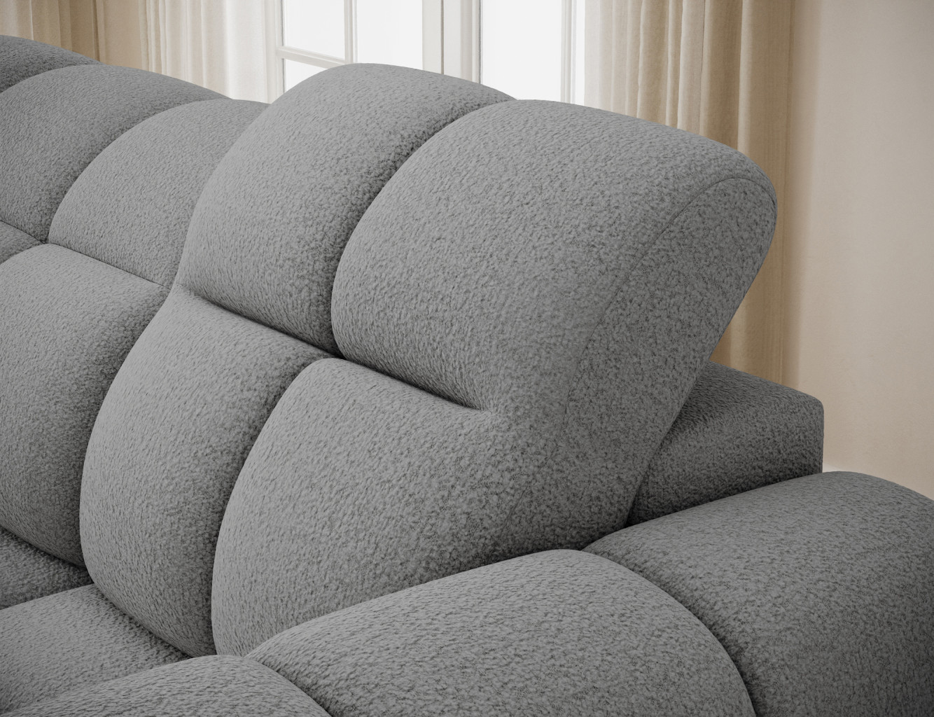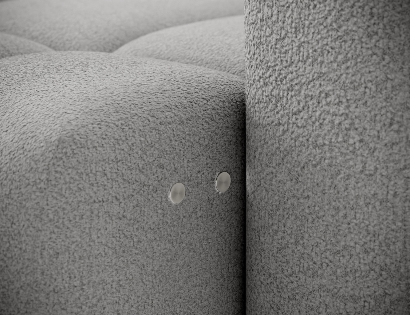 Dotaz na produkt Na splátky ještě dnesRohová pohovka Fanito je moderní, prostorná sedací souprava ve tvaru L určená do obývacího pokoje. Vyznačuje se pevnou, zaoblenou siluetou, hlubokým sedákem a segmentovaným prošíváním, které zdůrazňuje její designový a zároveň útulný charakter – ideální pro domácí relaxační zónu. Model má rozměry 288 × 200 × 105 cm a hmotnost 130,6 kg, což zajišťuje stabilitu a každodenní pohodlí. Výplň sedáku kombinuje vlnité pružiny typu B, vysoce pružnou pěnu HR3030 a prošívanou vatu o gramáži 150 g/m², což poskytuje pružnost, pohodlí a odolnost proti prohýbání, zatímco opěradlo je vyztuženo čalounickými popruhy a profilovanou polyuretanovou pěnou T2316 pro ergonomickou oporu zad. Jako spací sedací souprava nabízí praktickou spací plochu o rozměrech 85 × 232 × 47 cm a elektrické prodloužení sedáku (pohon) o 28 cm umožňuje rychle a bez námahy zvětšit plochu na odpočinek. Mechanismus opěrky hlavy s vratnou pružinou navíc umožňuje pohodlné nastavení opěrky hlavy, což z rohové pohovky Fanito dělá vynikající volbu pro každého, kdo hledá pohodlnou výsuvnou pohovku, která v sobě spojuje styl, funkčnost a vysokou kvalitu zpracování.Látka: Royal 04
