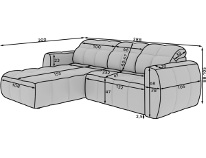 Dotaz na produkt Na splátky ještě dnesRohová pohovka Fanito je moderní, prostorná sedací souprava ve tvaru L určená do obývacího pokoje. Vyznačuje se pevnou, zaoblenou siluetou, hlubokým sedákem a segmentovaným prošíváním, které zdůrazňuje její designový a zároveň útulný charakter – ideální pro domácí relaxační zónu. Model má rozměry 288 × 200 × 105 cm a hmotnost 130,6 kg, což zajišťuje stabilitu a každodenní pohodlí. Výplň sedáku kombinuje vlnité pružiny typu B, vysoce pružnou pěnu HR3030 a prošívanou vatu o gramáži 150 g/m², což poskytuje pružnost, pohodlí a odolnost proti prohýbání, zatímco opěradlo je vyztuženo čalounickými popruhy a profilovanou polyuretanovou pěnou T2316 pro ergonomickou oporu zad. Jako spací sedací souprava nabízí praktickou spací plochu o rozměrech 85 × 232 × 47 cm a elektrické prodloužení sedáku (pohon) o 28 cm umožňuje rychle a bez námahy zvětšit plochu na odpočinek. Mechanismus opěrky hlavy s vratnou pružinou navíc umožňuje pohodlné nastavení opěrky hlavy, což z rohové pohovky Fanito dělá vynikající volbu pro každého, kdo hledá pohodlnou výsuvnou pohovku, která v sobě spojuje styl, funkčnost a vysokou kvalitu zpracování.Látka: Royal 18