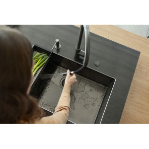 Dotaz na produkt Na splátky ještě dnesOtočná 180°. S vytahovací koncovkou osazenou perlátorem. S regulací Sprcha/Proud. Opletená sprchová hadice 180 cm. Připojení Hadičky 45 cm. Průtok vody 10 l/min. (3 bar). Laminární průtok vody. PVD coating. Není vhodná pro montáž do nerezových dřezů.
