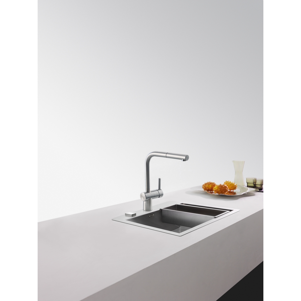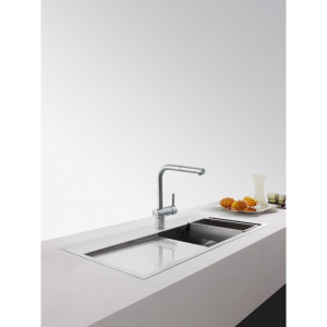 Dotaz na produkt Na splátky ještě dnesOtočná 180°. S vytahovací koncovkou osazenou perlátorem. Opletená sprchová hadice 150 cm. Připojení Hadičky 45 cm. Průtok vody 9,7 l/min. (3 bar). Laminární průtok vody. Není vhodná pro montáž do nerezových dřezů.