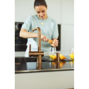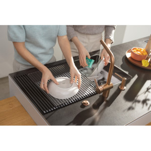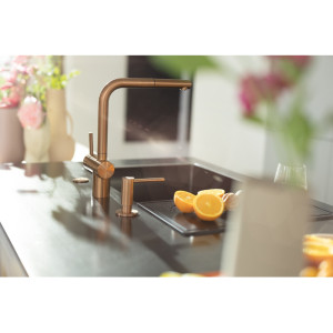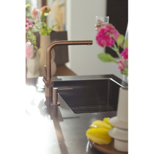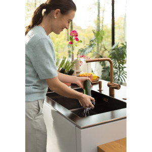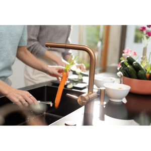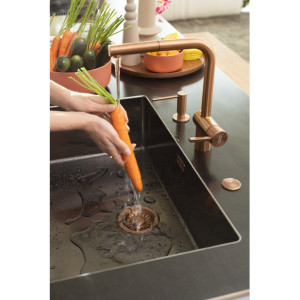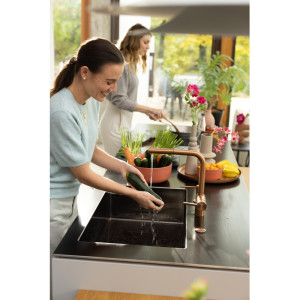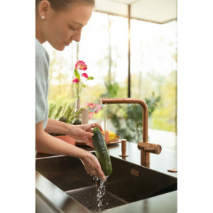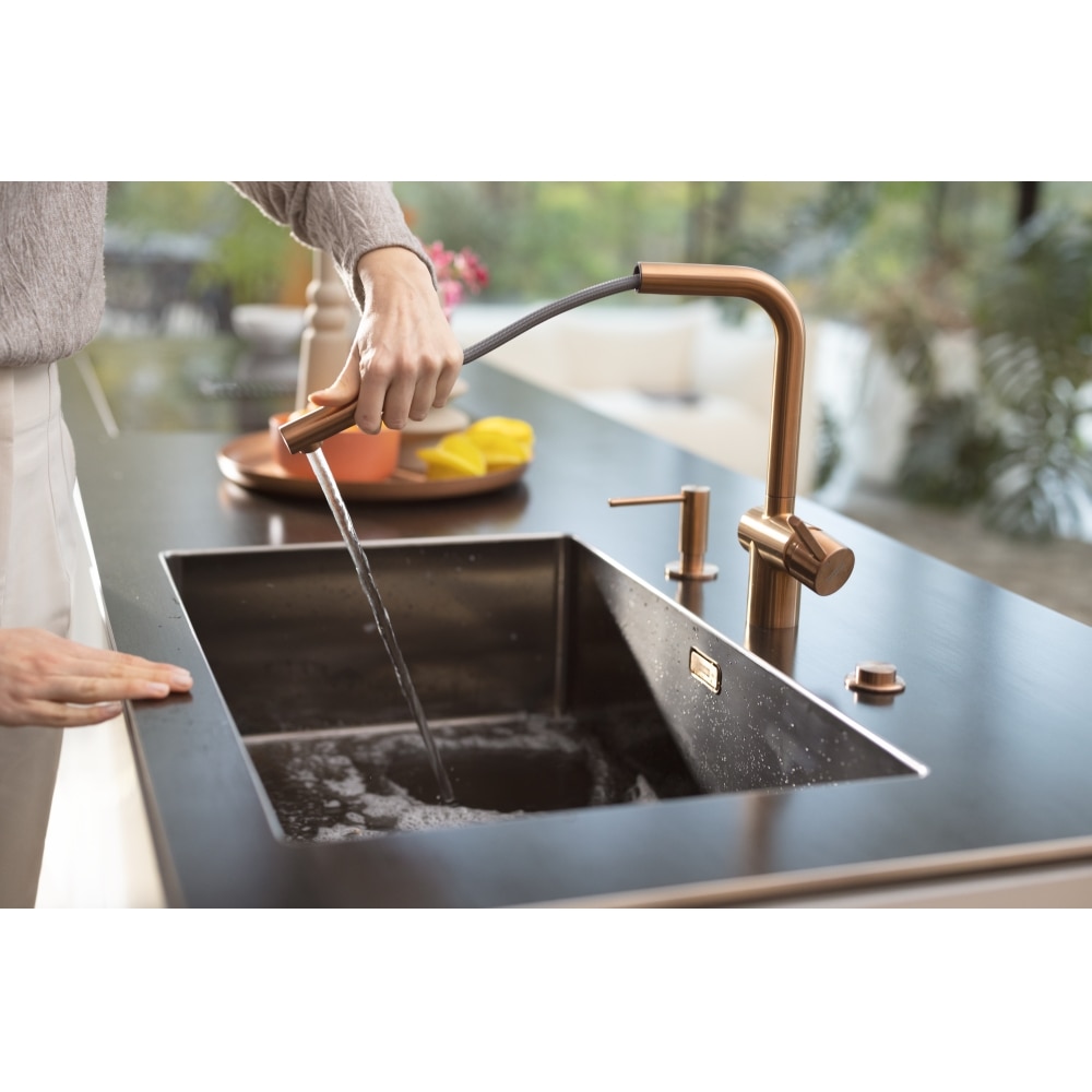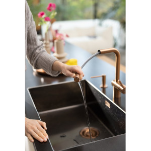 Dotaz na produkt Na splátky ještě dnesOtočná 180°. S vytahovací koncovkou osazenou perlátorem. Opletená sprchová hadice 150 cm. Připojení Hadičky 45 cm. Průtok vody 9,7 l/min. (3 bar). Laminární průtok vody. PVD coating. Není vhodná pro montáž do nerezových dřezů.