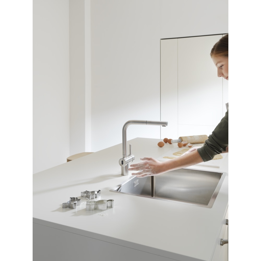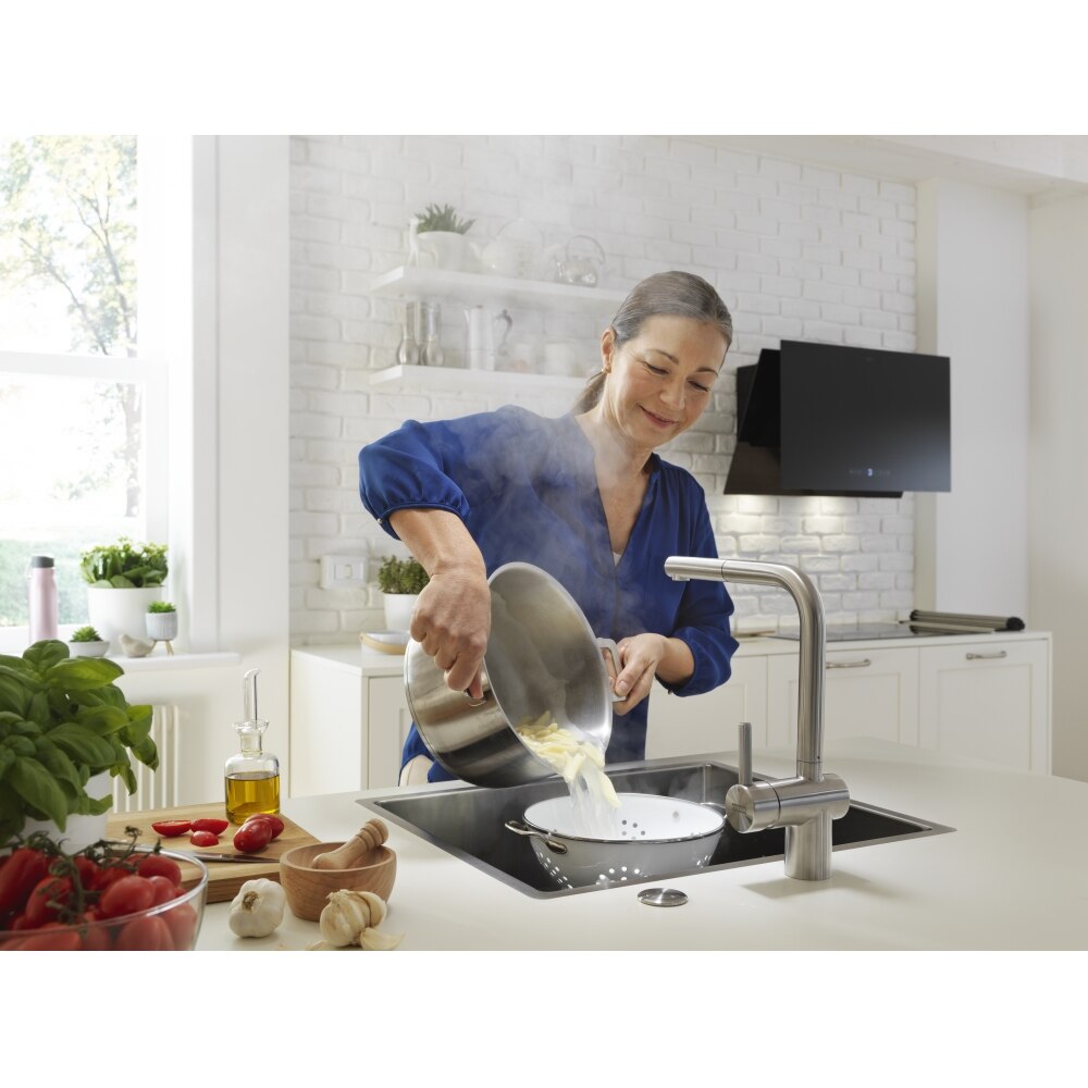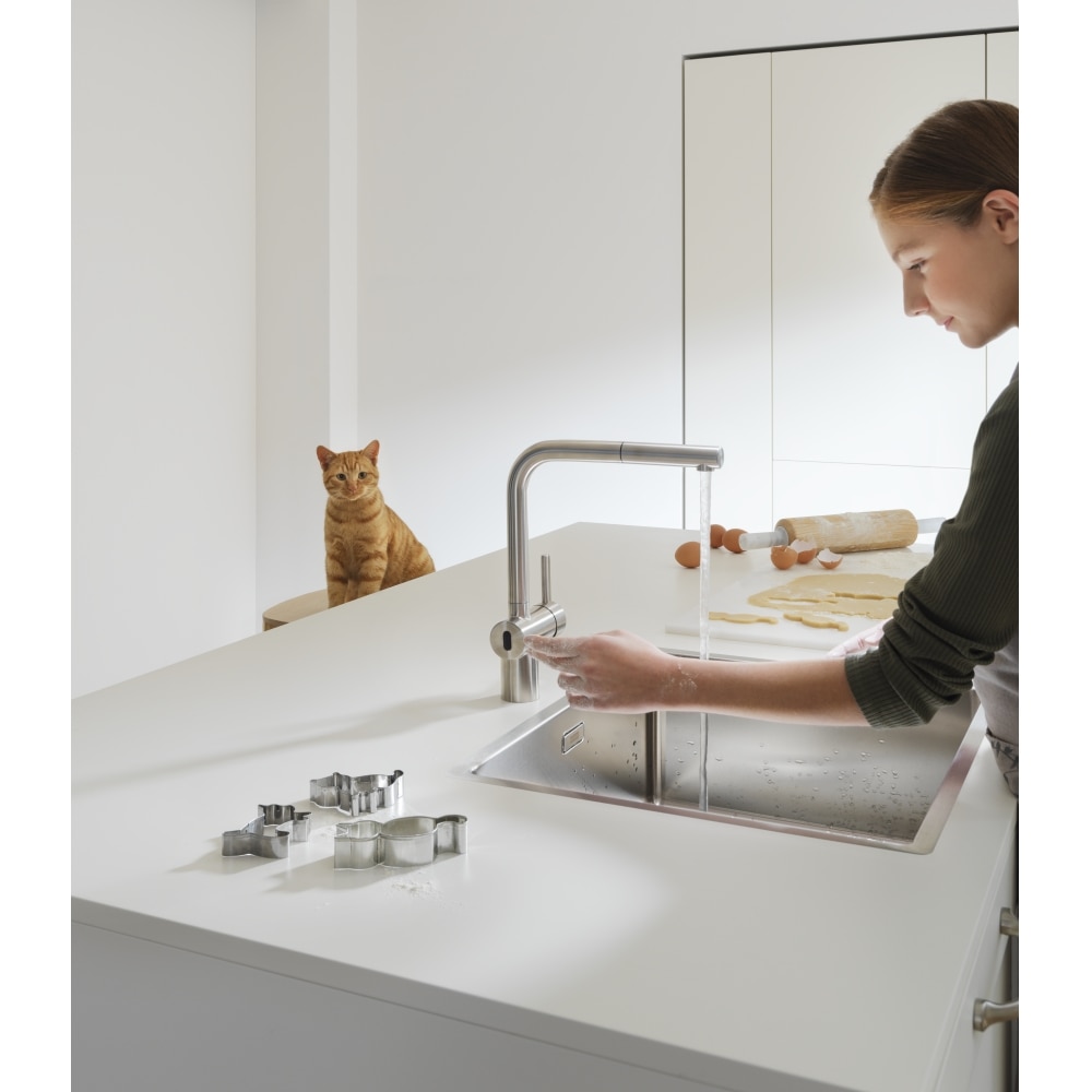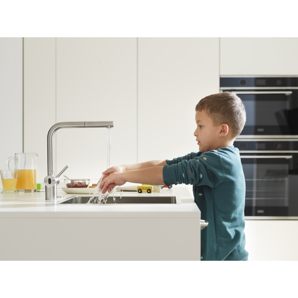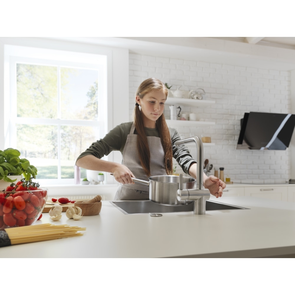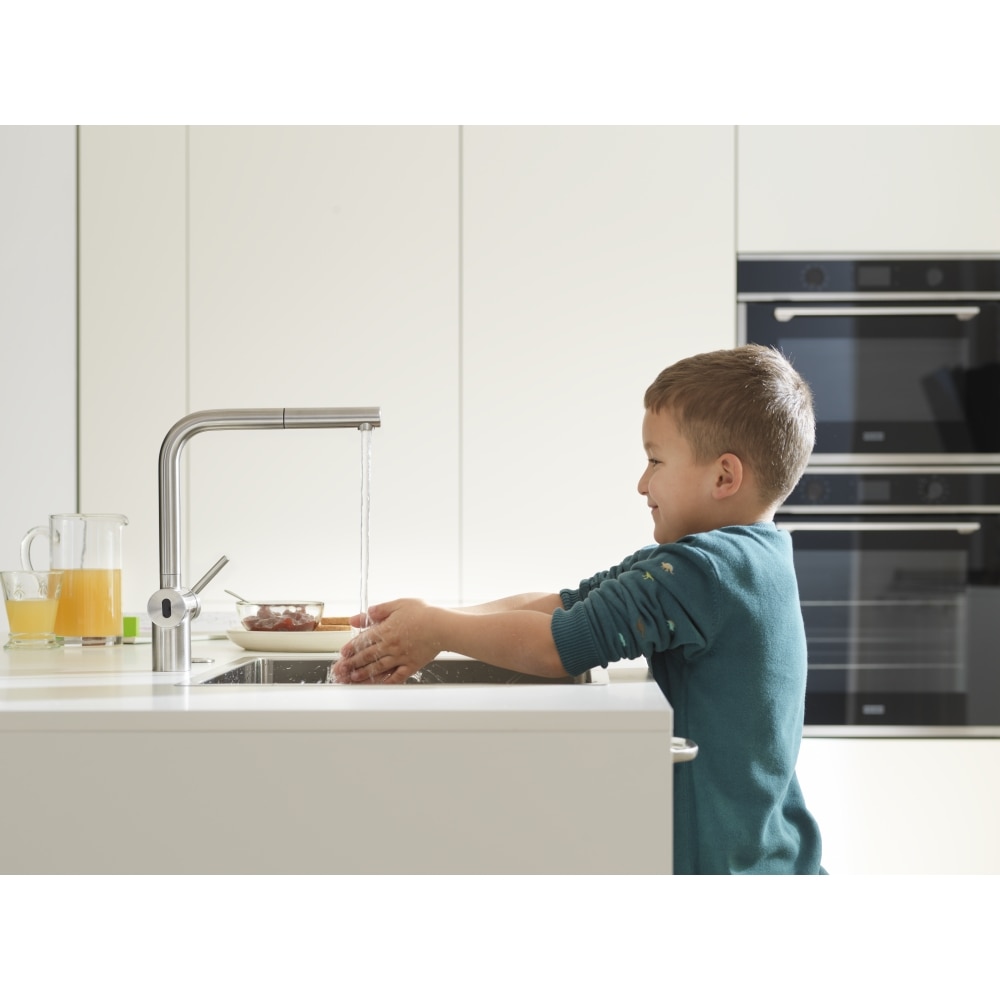 Dotaz na produkt Na splátky ještě dnesAtlas Neo Sensor je hybridní kuchyňská směšovací baterie. Můžete ji ovládat bezdotykově prostřednictvím infračerveného senzoru nebo standardně páčkou na straně baterie. Senzorová. Otočná 180°. S vytahovací koncovkou osazenou perlátorem. Opletená sprchová hadice 150 cm. Připojení Hadičky 60 cm. Průtok vody 7 l/min. (3 bar). Laminární průtok vody. Napájení 4× Tužková baterie AA. Není vhodná pro montáž do nerezových dřezů.
