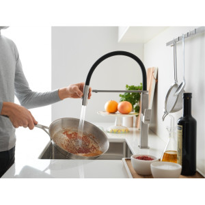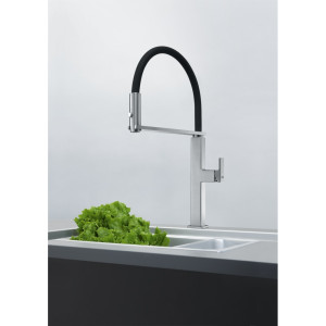Dotaz na produkt Na splátky ještě dnesOtočná 360°. Hranatá základna 5× 5 cm. S koncovkou na barevné hadici s kovovou pružinou uvnitř osazenou perlátorem. S regulací Sprcha/Proud. Kombinace nerez/černá. Připojení Hadičky 45 cm. Průtok vody 8,5 l/min. (3 bar). Není vhodná pro montáž do nerezových dřezů.
