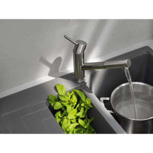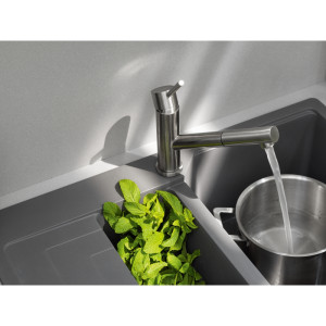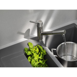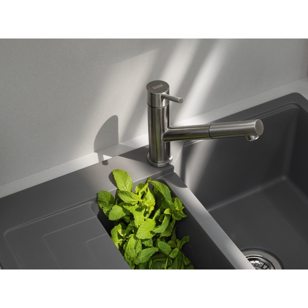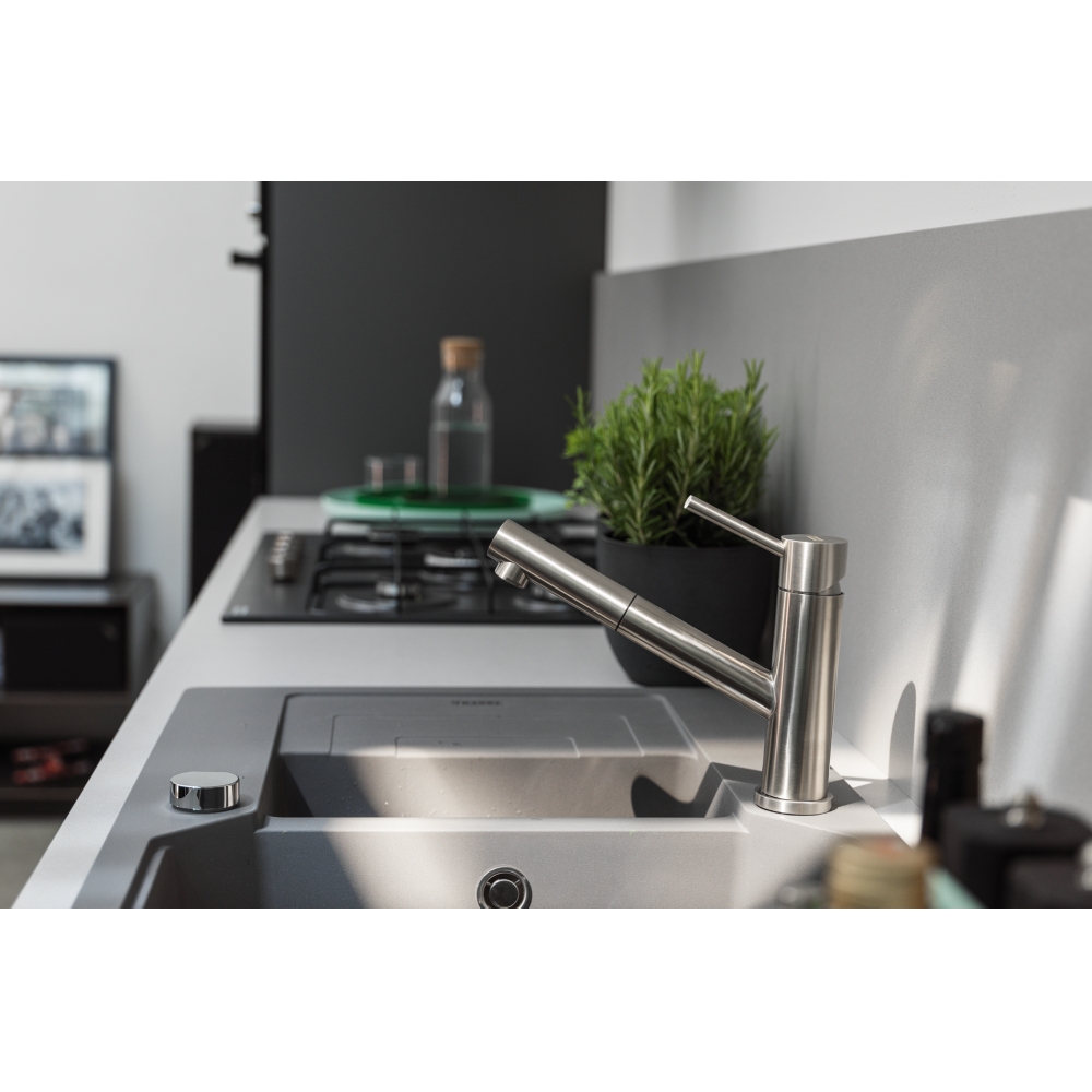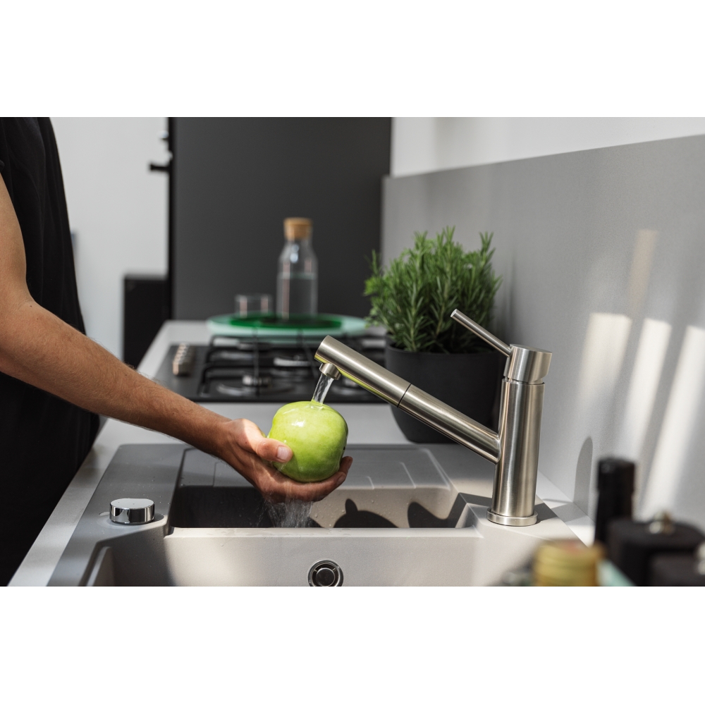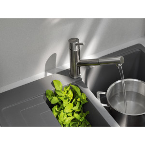 Dotaz na produkt Na splátky ještě dnesOtočná 120°. S vytahovací koncovkou osazenou perlátorem. Opletená sprchová hadice 150 cm. Připojení Hadičky 45 cm. Průtok vody 8,5 l/min. (3 bar). Laminární průtok vody. Technologie pro úsporu vody. Eco technologie (Úspora teplé vody).
