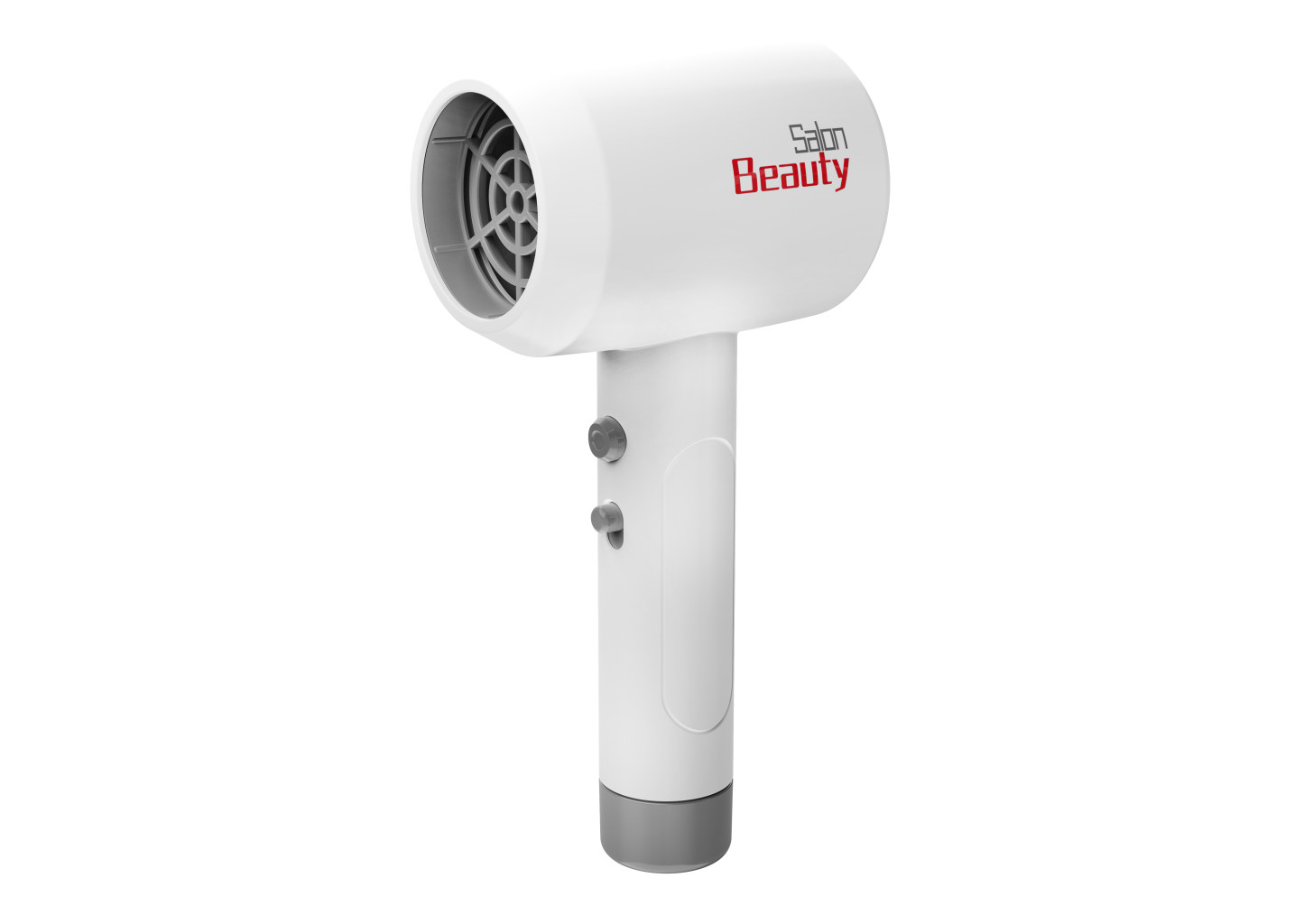 Dotaz na produktFén na vlasy. Funkce foukání, dva nástavce, on/off tlačítko a tlačítko bez funkce. 1xAA baterie není součástí. Velikost 18cm.