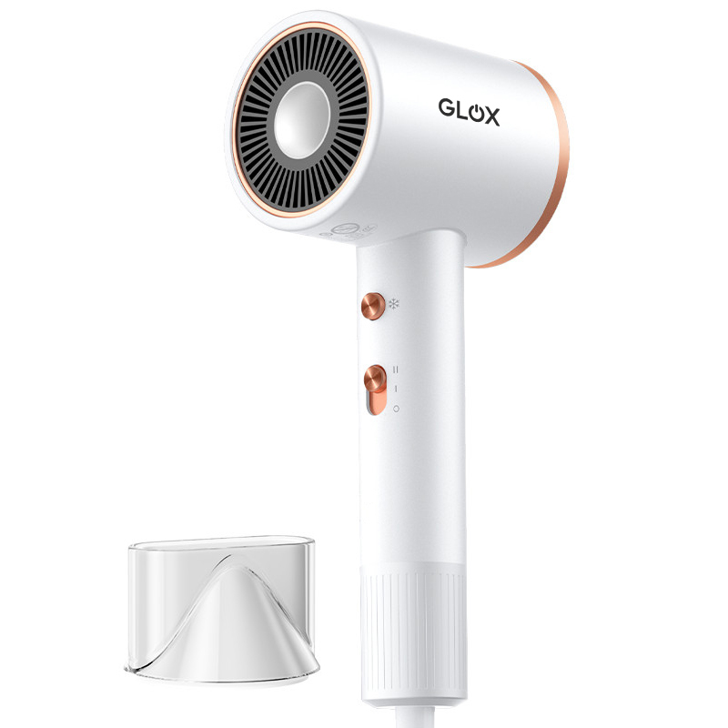 Dotaz na produktIonizační fén na vlasy Glox D1 W představuje revoluční řešení pro každodenní úpravu vlasů, které kombinuje špičkovou technologii s elegantním designem. Tento produkt je navržen tak, aby splňoval nejvyšší standardy a umožnil vám dosáhnout účesu salonní kvality přímo z pohodlí vašeho domova. S výkonem 1 400 W a vysoce výkonným kartáčovým motorem, který dosahuje až 20 000 otáček za minutu, zajišťuje rychlé a efektivní vysoušení vlasů, a to i při časovém presu. Ionizační technologie pomáhá redukovat krepatění a zajišťuje, že vaše vlasy budou hladké a lesklé, jako byste právě opustili kadeřnický salón. Nastavitelné teploty a rychlosti fén nabízí čtyři úrovně teploty a dvě rychlosti proudění vzduchu, což vám umožní přizpůsobit sušení přesně vašim potřebám a typu vlasů. Integrovaný snímač teploty chrání vaše vlasy před nadměrným teplem, čímž minimalizuje riziko poškození a udržuje vlasy zdravé a pevné. Díky rozměrům a hmotnosti je tento fén ideální pro cestování a snadné skladování.