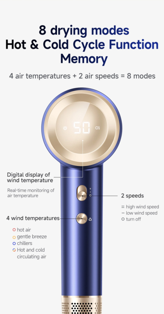 Dotaz na produkt Na splátky ještě dnesIonizační fén GLOX D4 B je moderní a výkonný nástroj pro péči o vaše vlasy, který kombinuje nejnovější technologie s elegantním designem. Tento fén je ideální volbou pro každého, kdo hledá efektivní a rychlé sušení vlasů s minimálním poškozením. Klíčové vlastnosti: Super rychlost vzduchu: Díky výkonnému střídavému motoru s otáčkami 105 000 za minutu poskytuje fén rychlé a efektivní sušení. Čtyři úrovně teploty vzduchu umožňují přizpůsobit teplotu podle typu vašich vlasů a požadovaného stylingu. Dvě úrovně rychlosti vzduchu nabízí flexibilitu při sušení a stylingu, aby vyhovovaly vašim individuálním potřebám. Barevná světla a digitální displej umožňují snadné ovládání a přehled o nastavení fénu. 200 milionů záporných iontů pomáhají redukovat krepatění vlasů a zvyšují jejich lesk, čímž zanechávají vlasy hladké a zdravě vypadající. Ionizační fén GLOX D4 B je navržen tak, aby splňoval nejvyšší standardy kvality a výkonu, což z něj činí ideální volbu pro profesionály i domácí uživatele. Jeho kompaktní a lehký design usnadňuje manipulaci a zajišťuje pohodlné používání. Tento fén je perfektním spojením technologie a stylu, který přináší profesionální výsledky přímo do vašeho domova.