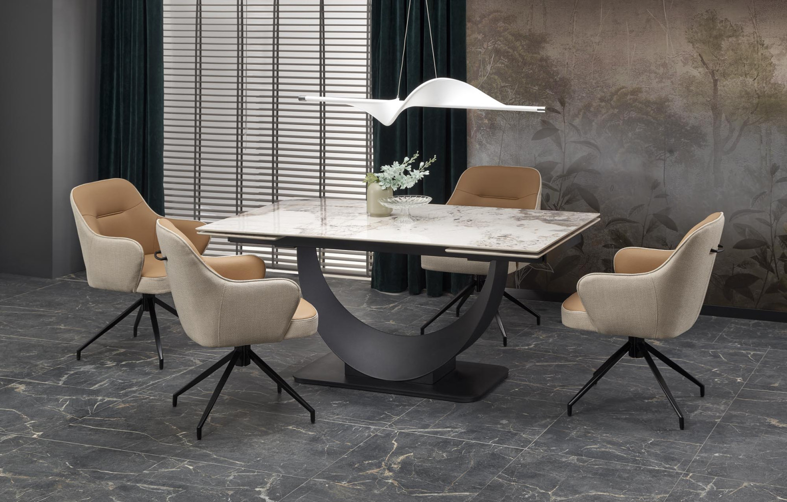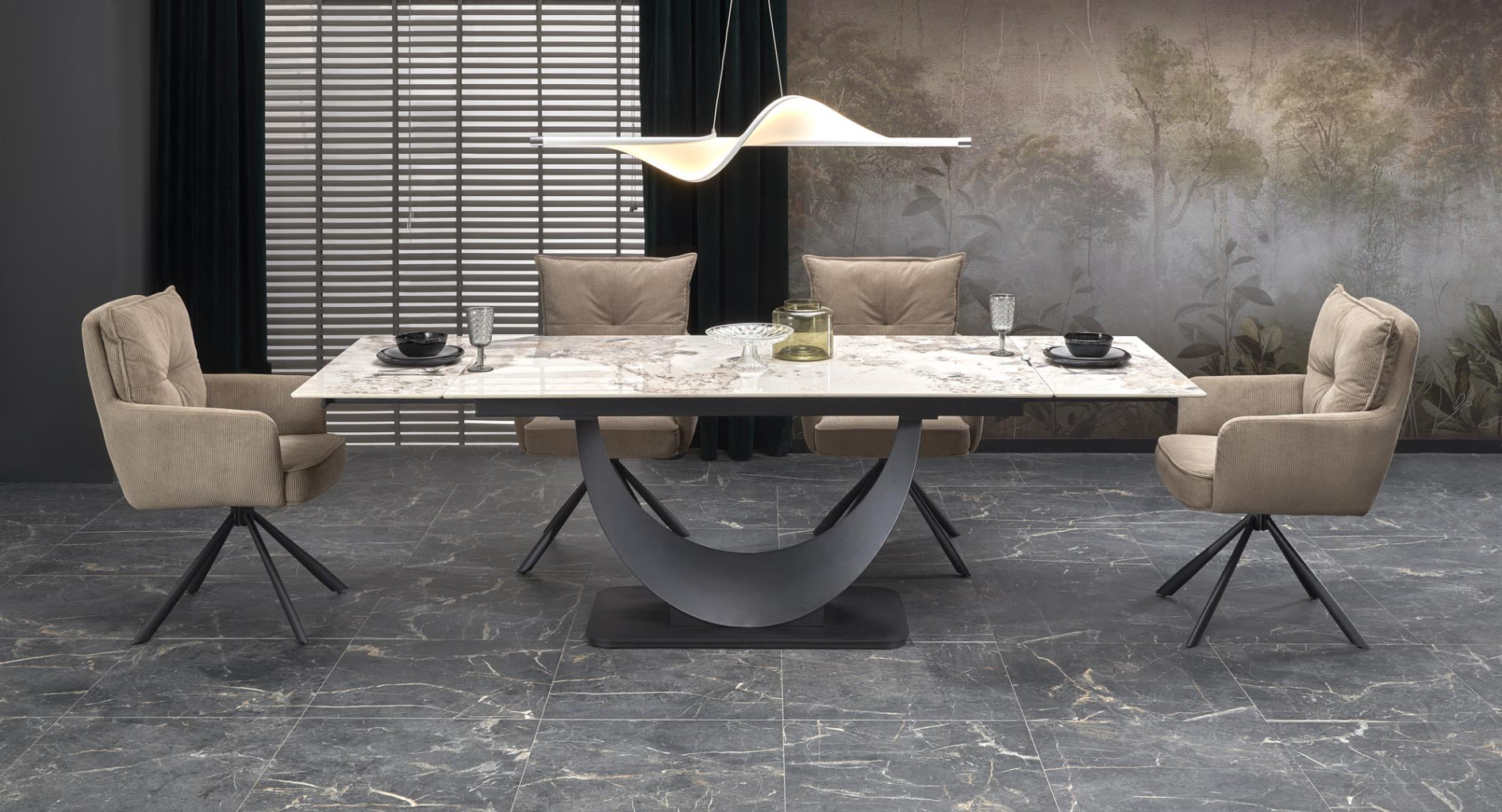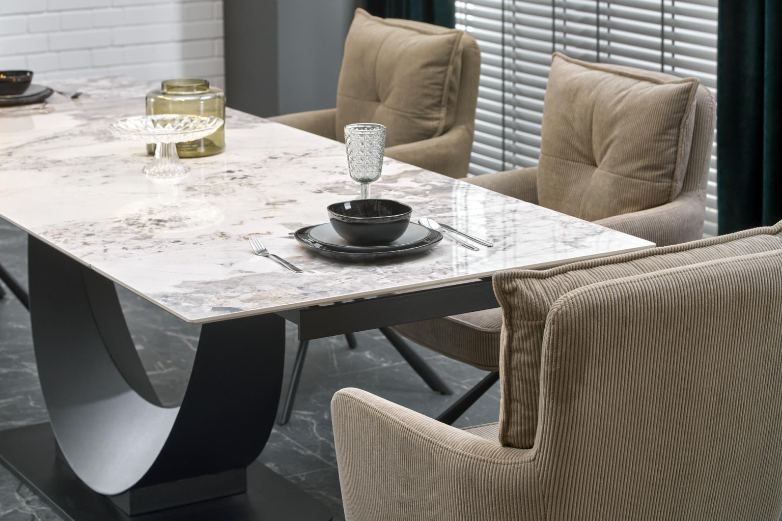 Dotaz na produkt Na splátky ještě dnesrozměry: 160-240/92/75 cm; rozkládací stůl, materiál: sintrovaná / práškově lakovaná ocel, barva: deska - bílý mramor, nohy - černá