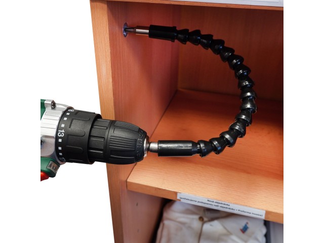 Nástavec na vrtačku pomůže při utahování a povolování šroubků na těžko dosažitelných místech. Jelikož je ohebný a flexibilní, dostane se i do výklenků, úzkých prostorů a rohů.