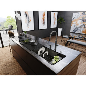 Dotaz na produkt Na splátky ještě dnesOdsavač par v indukční varné desce Mythos 2Gether Icon Steel. Provedení černé sklo. Energetická třída A+. Odsavač par: Montáž do pracovní desky. Šířka 83 cm. Ovládání: Senzorové. Digitální bílý displej + Dotykový ovladač typu Slide. 9 Stupňů výkonu, 1× Intenzivní stupeň. Automatická aktivace s varnou deskou. Voděodolný motor. Mřížka tepelně odolný kompozit + nerez. Max. výkon 600 m3/h (Norma EN 61591). Součástí odsavače par je vyjímatelný kolektor na tekutinu (V případě náhodné vylití tekutiny do odsavače par). Indukční varná deska: 4 Varné zóny. 2× Flexi zóna. Ovládání: Digitální bílý displej + 4 Dotykové ovladače typu Slide. 9 Úrovní ohřevu. Funkce: Rozpouštění. Booster. Stop&Go. Dětský zámek. Časovač 4×. Odsavač par i indukce jsou perfektně integrovány. Odsávání je aktivováno automaticky, jakmile je varná deska v provozu. MODEL POUZE PRO VNĚJŠÍ ODTAH.