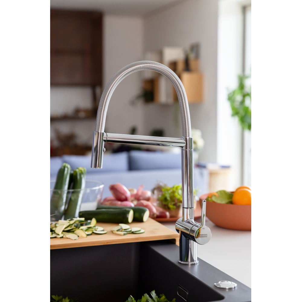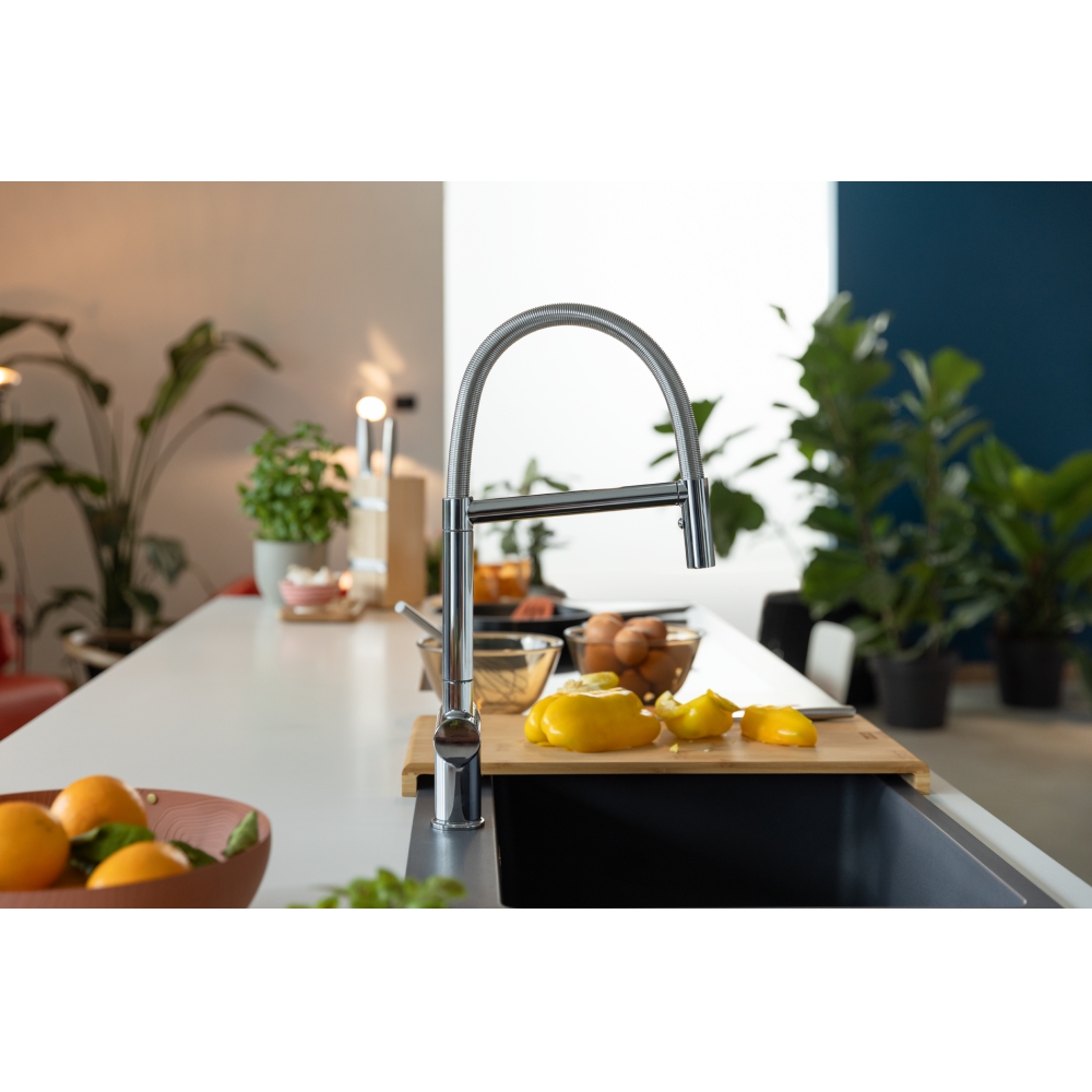 Dotaz na produkt Na splátky ještě dnesInspirativní navenek, inovativní uvnitř. Tajemstvím šetrnosti k životnímu prostředí je ECO kartuše, navržená tak, aby omezovala průtok i teplotu, pomáhá aktivně šetřit vodu i energii. Díky stupňovitému ovládání páčkou je možné snížit spotřebu vody až o 50%. Pootočením kolečka na kartuši můžete také omezit max. možnou teplotu vody tekoucí z baterie. Otočná 180°. S koncovkou na pružině osazenou perlátorem. S regulací Sprcha/Proud. Hadice s kovovou pružinou. Připojení Hadičky 55 cm. Průtok vody 7,5 l/min. (3 bar). Technologie pro úsporu vody. ECO kartuše. Není vhodná pro montáž do nerezových dřezů.