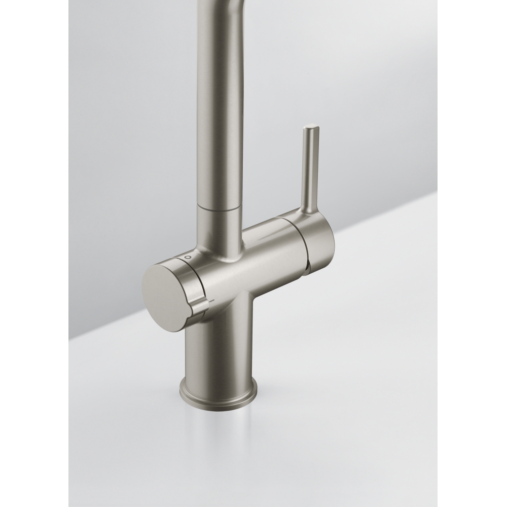 Dotaz na produkt Na splátky ještě dnesBaterie ACTIVE TWIST s integrovaným ovládáním výpusti. Kromě stylového, minimalistického vzhledu nabízí baterie ACTIVE TWIST inovativní speciální funkci, která spojuje baterii s ovládáním výpusti dřezu. Otočením ovladače na těle baterie ovládáte otevírání a zavírání výpusti dřezu. Baterie ACTIVE TWIST má schopnost dřez nejen naplnit, ale také jej vyprázdnit. Takže voda snadno, bezpečně a hygienicky odtéká. Doporučujeme kombinovat s nerezovými dřezy modelové řady Mythos (MYX 210/610-34, MYX 210/610-50, MYX 110-34 a MYX 110-50) a fragranitovými dřezy modelové řady Kubus 2 (KNG 110-34 a KNG 110-52). Otočná 180°. Připojení Hadičky 45 cm. Průtok vody 8,3 l/min. (3 bar). Laminární průtok vody. Technologie pro úsporu vody. ECO kartuše.