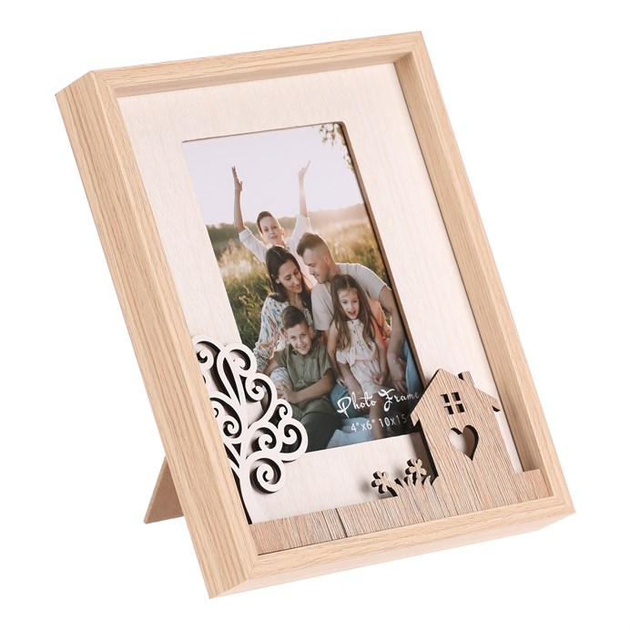 Dotaz na produktFotorámeček o rozměru 10 x 15 cm je ideální pro uchování vašich rodinných vzpomínek. Rámeček vyrobený z MDF v přírodní barvě dřeva a jeho jednoduchý design se hodí do každého interiéru. Rámeček je uzpůsoben k postavení na poličku, do regálu nebo na stolek, kde připomene krásné společné chvíle s vašimi blízkými.