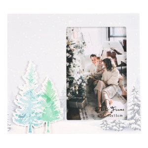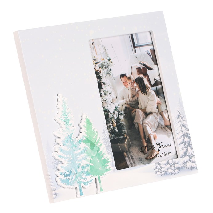 Dotaz na produktFotorámeček s vánočními motivy pro formát velikosti 10 x 15 cm je ideální pro uchování vašich rodinných vzpomínek. Rámeček vyrobený z MDF desky v bílé barvě ozdobený motivem zasněžených jehličnanů a jeho jednoduchý design se hodí do každého interiéru. Rámeček je uzpůsoben k postavení na poličku, do regálu nebo na stolek, kde připomene krásné společné chvíle s vašimi blízkými.