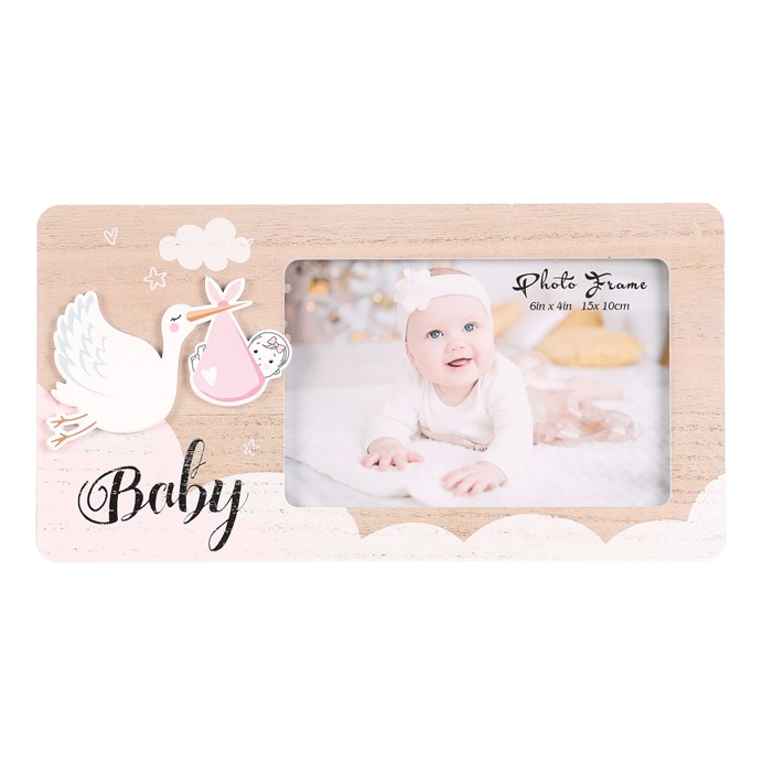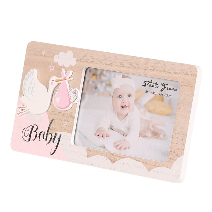 Dotaz na produktFotorámeček s obrázkem ptáčka nesoucího miminko o rozměru 15 x 10 cm je ideální pro uchování radostných chvil s vaším děťátkem. Vyrobený je z MDF desky v přírodní barvě dřeva a zdobí jej nápis "Baby". Bude perfektní na postavení do dětského pokoje nebo jako krásný dárek pro novopečené rodiče.