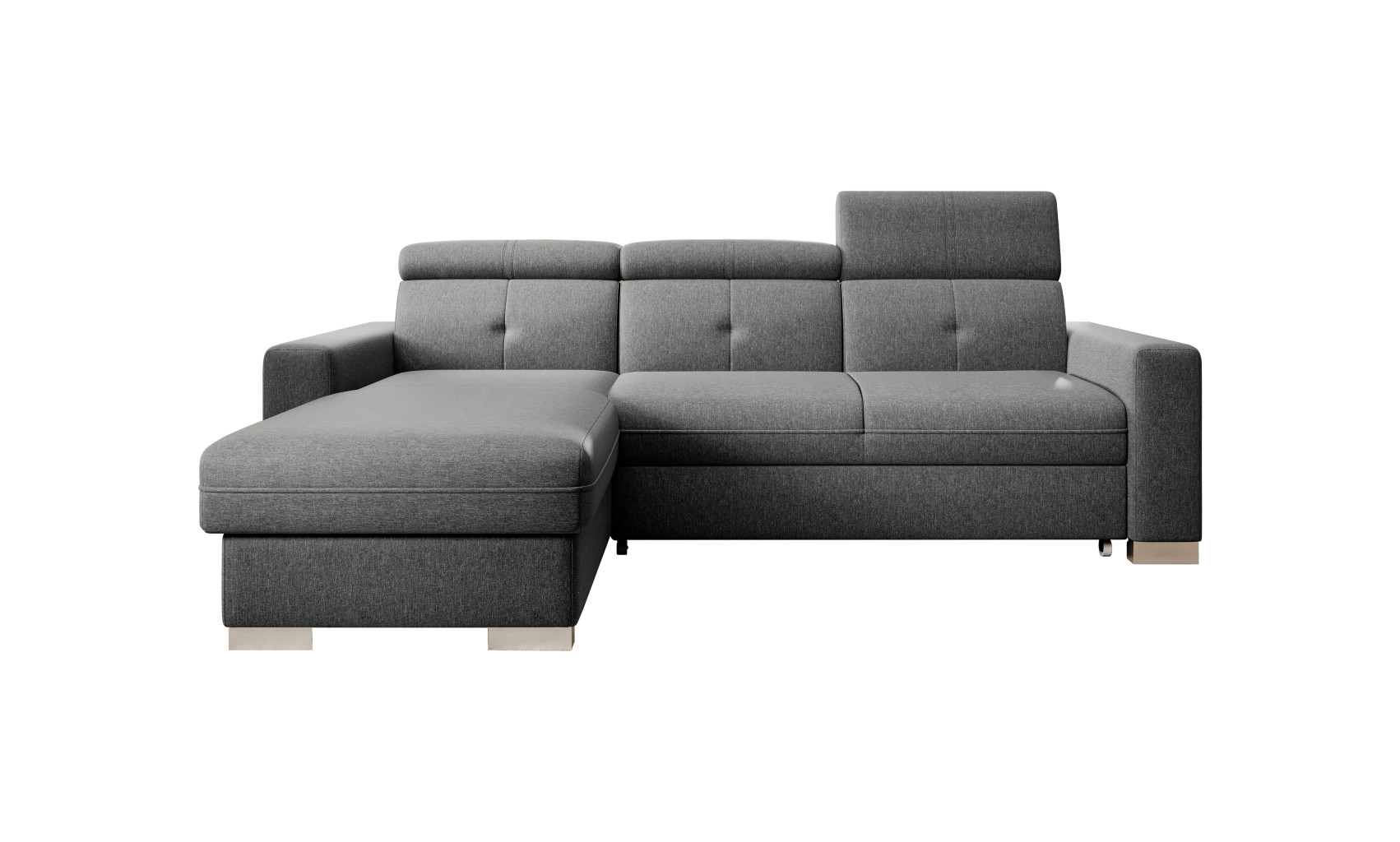 Dotaz na produkt Na splátky ještě dnesRohová pohovka Fresia je kus nábytku ve tvaru L, který vypadá skvěle a byl navržen s ohledem na blažený odpočinek. Kromě estetických hodnot je také velmi funkční a pohodlná, protože je vybavena 3 pohyblivými opěrkami hlavy. Fresia je kus nábytku o šířce 247 cm, hloubce 176 cm a výšce 104 cm. Dřevěné a chromované nohy Fresie o délce 5,5 centimetru jsou krásnou dekorací a zdůrazňují její elegantní vzhled. Další výhodou rohové pohovky je přihrádka na ložní prádlo, díky které můžete udržovat obývací pokoj nebo pokoj pro hosty uklizený. Funkce rozkládání také poskytuje spací plochu o rozměrech 204 x 126 cm – skvělá volba v případě nečekané návštěvy hostů. Mechanismus používaný k otevírání rohové pohovky je velmi oblíbeného a pohodlného typu delfín. Působivé čalounění z kolekce ELTAP dodává tomuto kusu nábytku charakter a styl. Nabídka zahrnuje klasické i originálnější barvy. Díky sedáku vyplněnému pěnou T30 poskytuje rohová pohovka stabilní oporu a pohodlný odpočinek. Další důležitou součástí čalouněného nábytku jsou pružiny. V rohové pohovce Fresia byla použita vlnitá pružina typu B, takže sedák tohoto kusu nábytku je pružnější a ohnutý, a proto extrémně pohodlný. Látky: Flores 4