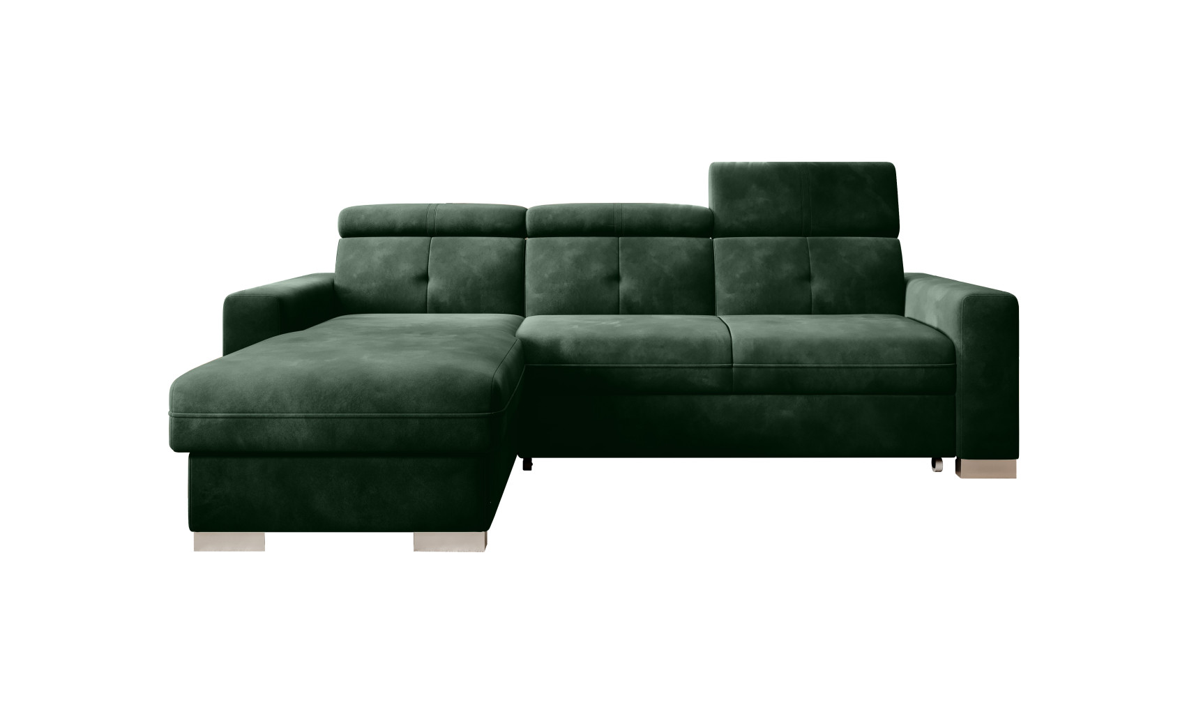 Dotaz na produkt Na splátky ještě dnesRohová pohovka Fresia je kus nábytku ve tvaru L, který vypadá skvěle a byl navržen s ohledem na blažený odpočinek. Kromě estetických hodnot je také velmi funkční a pohodlná, protože je vybavena 3 pohyblivými opěrkami hlavy. Fresia je kus nábytku o šířce 247 cm, hloubce 176 cm a výšce 104 cm. Dřevěné a chromované nohy Fresie o délce 5,5 centimetru jsou krásnou dekorací a zdůrazňují její elegantní vzhled. Další výhodou rohové pohovky je přihrádka na ložní prádlo, díky které můžete udržovat obývací pokoj nebo pokoj pro hosty uklizený. Funkce rozkládání také poskytuje spací plochu o rozměrech 204 x 126 cm – skvělá volba v případě nečekané návštěvy hostů. Mechanismus používaný k otevírání rohové pohovky je velmi oblíbeného a pohodlného typu delfín. Působivé čalounění z kolekce ELTAP dodává tomuto kusu nábytku charakter a styl. Nabídka zahrnuje klasické i originálnější barvy. Díky sedáku vyplněnému pěnou T30 poskytuje rohová pohovka stabilní oporu a pohodlný odpočinek. Další důležitou součástí čalouněného nábytku jsou pružiny. V rohové pohovce Fresia byla použita vlnitá pružina typu B, takže sedák tohoto kusu nábytku je pružnější a ohnutější, a proto extrémně pohodlný. Látky: Loco 35
