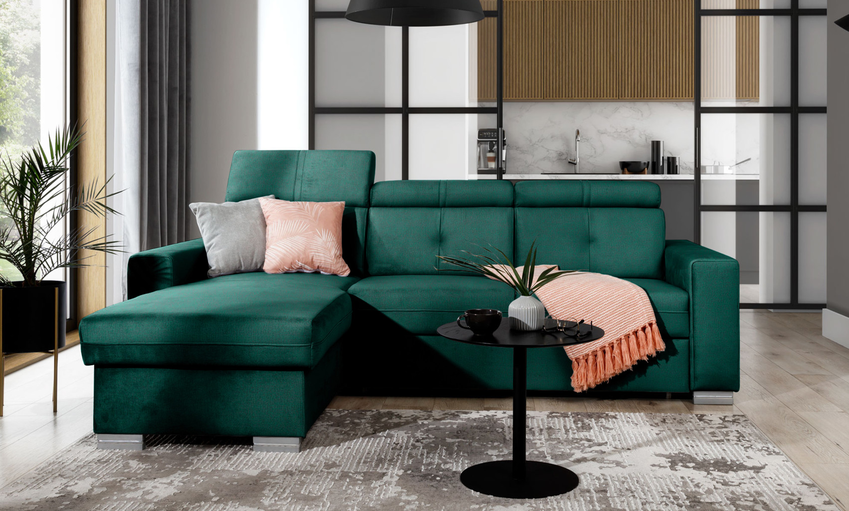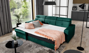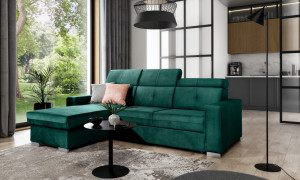 Dotaz na produkt Na splátky ještě dnesRohová pohovka Fresia je kus nábytku ve tvaru L, který vypadá skvěle a byl navržen s ohledem na blažený odpočinek. Kromě estetických hodnot je také velmi funkční a pohodlná, protože je vybavena 3 pohyblivými opěrkami hlavy. Fresia je kus nábytku o šířce 247 cm, hloubce 176 cm a výšce 104 cm. Dřevěné a chromované nohy Fresie o délce 5,5 centimetru jsou krásnou dekorací a zdůrazňují její elegantní vzhled. Další výhodou rohové pohovky je přihrádka na ložní prádlo, díky které můžete udržovat obývací pokoj nebo pokoj pro hosty uklizený. Funkce rozkládání také poskytuje spací plochu o rozměrech 204 x 126 cm – skvělá volba v případě nečekané návštěvy hostů. Mechanismus používaný k otevírání rohové pohovky je velmi oblíbeného a pohodlného typu delfín. Působivé čalounění z kolekce ELTAP dodává tomuto kusu nábytku charakter a styl. Nabídka zahrnuje klasické i originálnější barvy. Díky sedáku vyplněnému pěnou T30 poskytuje rohová pohovka stabilní oporu a pohodlný odpočinek. Další důležitou součástí čalouněného nábytku jsou pružiny. V rohové pohovce Fresia byla použita vlnitá pružina typu B, takže sedák tohoto kusu nábytku je pružnější a ohnutý, a proto extrémně pohodlný. Látky: Nube 35