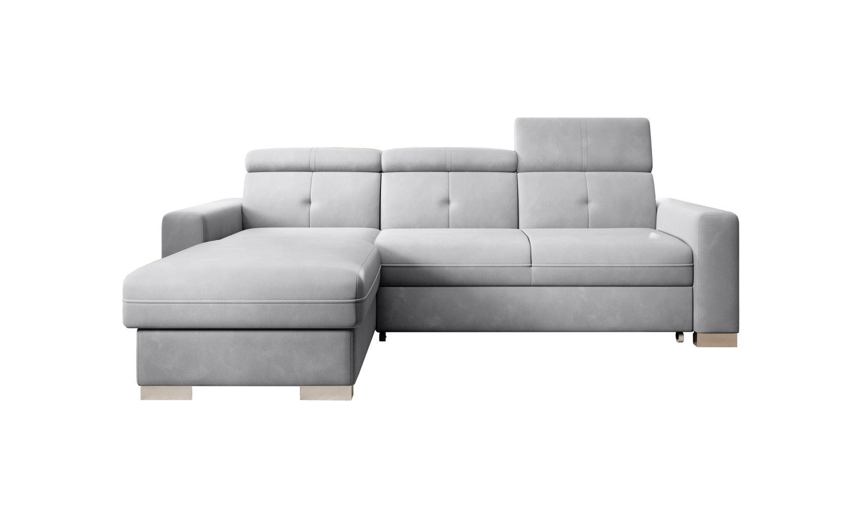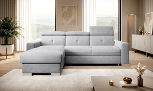 Dotaz na produkt Na splátky ještě dnesRohová pohovka Fresia je kus nábytku ve tvaru L, který vypadá skvěle a byl navržen s ohledem na blažený odpočinek. Kromě estetických hodnot je také velmi funkční a pohodlná, protože je vybavena 3 pohyblivými opěrkami hlavy. Fresia je kus nábytku o šířce 247 cm, hloubce 176 cm a výšce 104 cm. Dřevěné a chromované nohy Fresie o délce 5,5 centimetru jsou krásnou dekorací a zdůrazňují její elegantní vzhled. Další výhodou rohové pohovky je přihrádka na ložní prádlo, díky které můžete udržovat obývací pokoj nebo pokoj pro hosty uklizený. Funkce rozkládání také poskytuje spací plochu o rozměrech 204 x 126 cm – skvělá volba v případě nečekané návštěvy hostů. Mechanismus používaný k otevírání rohové pohovky je velmi oblíbeného a pohodlného typu delfín. Působivé čalounění z kolekce ELTAP dodává tomuto kusu nábytku charakter a styl. Nabídka zahrnuje klasické i originálnější barvy. Díky sedáku vyplněnému pěnou T30 poskytuje rohová pohovka stabilní oporu a pohodlný odpočinek. Další důležitou součástí čalouněného nábytku jsou pružiny. V rohové pohovce Fresia byla použita vlnitá pružina typu B, takže sedák tohoto kusu nábytku je pružnější a ohnutý, a proto extrémně pohodlný.Látky: Sola 4