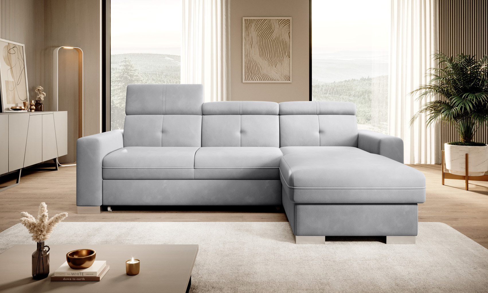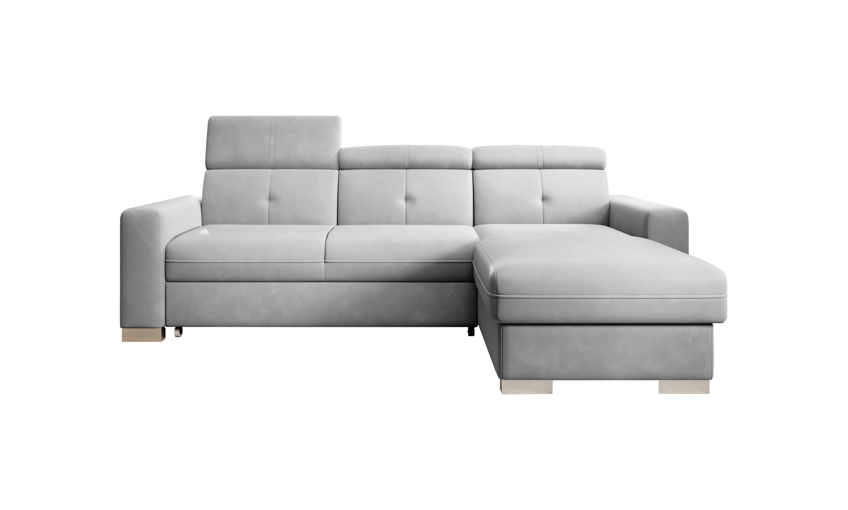 Dotaz na produkt Na splátky ještě dnesRohová pohovka Fresia je kus nábytku ve tvaru L, který vypadá skvěle a byl navržen s ohledem na blažený odpočinek. Kromě estetických hodnot je také velmi funkční a pohodlná, protože je vybavena 3 pohyblivými opěrkami hlavy. Fresia je kus nábytku o šířce 247 cm, hloubce 176 cm a výšce 104 cm. Dřevěné a chromované nohy Fresie o délce 5,5 centimetru jsou krásnou dekorací a zdůrazňují její elegantní vzhled. Další výhodou rohové pohovky je přihrádka na ložní prádlo, díky které můžete udržovat obývací pokoj nebo pokoj pro hosty uklizený. Funkce rozkládání také poskytuje spací plochu o rozměrech 204 x 126 cm – skvělá volba v případě nečekané návštěvy hostů. Mechanismus používaný k otevírání rohové pohovky je velmi oblíbeného a pohodlného typu delfín. Působivé čalounění z kolekce ELTAP dodává tomuto kusu nábytku charakter a styl. Nabídka zahrnuje klasické i originálnější barvy. Díky sedáku vyplněnému pěnou T30 poskytuje rohová pohovka stabilní oporu a pohodlný odpočinek. Další důležitou součástí čalouněného nábytku jsou pružiny. V rohové pohovce Fresia byla použita vlnitá pružina typu B, takže sedák tohoto kusu nábytku je pružnější a ohnutý, a proto extrémně pohodlný.Látky: Sola 4
