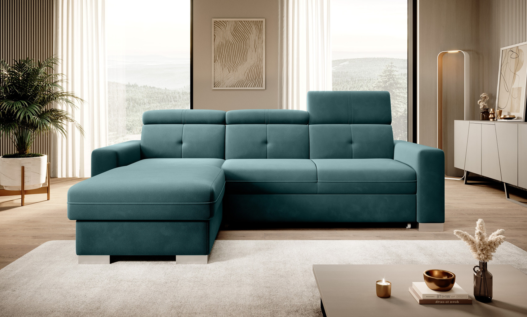 Dotaz na produkt Na splátky ještě dnesRohová pohovka Fresia je kus nábytku ve tvaru L, který vypadá skvěle a byl navržen s ohledem na blažený odpočinek. Kromě estetických hodnot je také velmi funkční a pohodlná, protože je vybavena 3 pohyblivými opěrkami hlavy. Fresia je kus nábytku o šířce 247 cm, hloubce 176 cm a výšce 104 cm. Dřevěné a chromované nohy Fresie o délce 5,5 centimetru jsou krásnou dekorací a zdůrazňují její elegantní vzhled. Další výhodou rohové pohovky je přihrádka na ložní prádlo, díky které můžete udržovat obývací pokoj nebo pokoj pro hosty uklizený. Funkce rozkládání také poskytuje spací plochu o rozměrech 204 x 126 cm – skvělá volba v případě nečekané návštěvy hostů. Mechanismus používaný k otevírání rohové pohovky je velmi oblíbeného a pohodlného typu delfín. Působivé čalounění z kolekce ELTAP dodává tomuto kusu nábytku charakter a styl. Nabídka zahrnuje klasické i originálnější barvy. Díky sedáku vyplněnému pěnou T30 poskytuje rohová pohovka stabilní oporu a pohodlný odpočinek. Další důležitou součástí čalouněného nábytku jsou pružiny. V rohové pohovce Fresia byla použita vlnitá pružina typu B, takže sedák tohoto kusu nábytku je pružnější a ohnutý, a proto extrémně pohodlný. Látky: Velvetmat 38