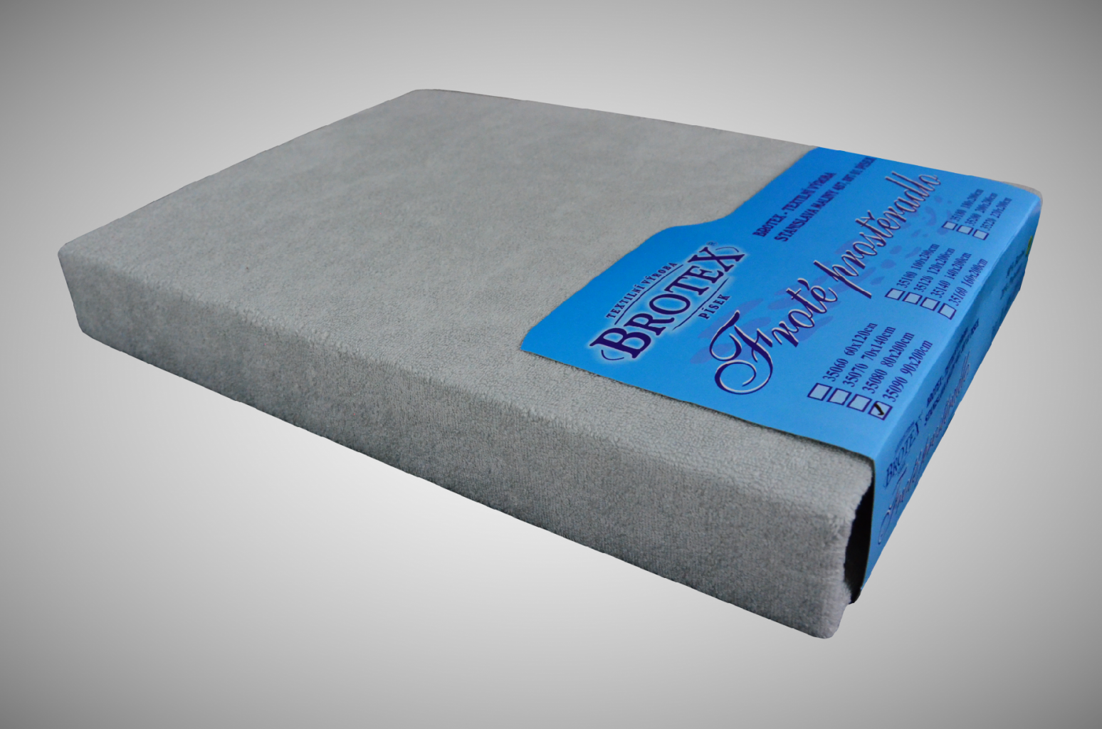 Napínací prostěradlo světle šedé barvy je vyrobeno z jemné froté pleteniny a nabízíme ho v několika rozměrech.