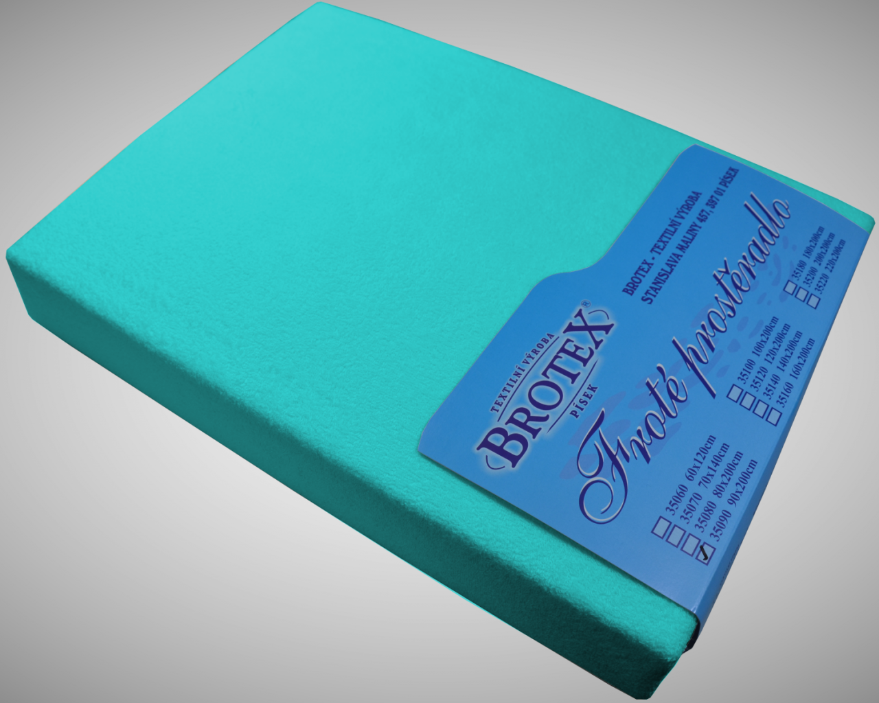 Napínací prostěradlo krásné tyrkysové barvy je vyrobeno z jemné froté pleteniny a nabízíme ho v několika rozměrech.