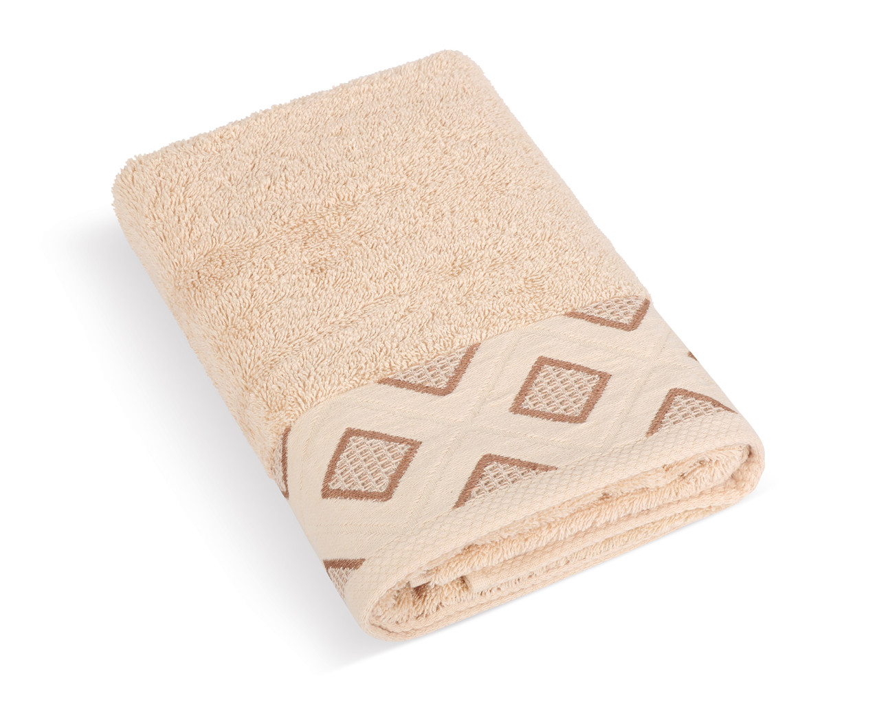 Rozměr 50 × 100 cm je ideální pro běžné denní použití jako ručník na ruce nebo obličej. Husté froté zajišťuje účinnou absorpci vlhkosti a zároveň pomáhá udržet tvar i hebkost ručníku i po opakovaném praní. Elegantní dekorativní bordura dodává ručníku nadčasový vzhled, který snadno zapadne do moderního i klasického interiéru koupelny.