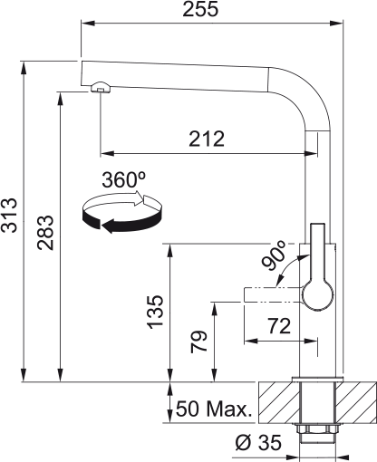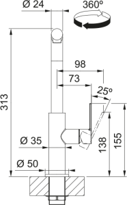 Otočná 360°. Připojení Hadičky 45 cm. Průtok vody 10,2 l/min. (3 bar). Laminární průtok vody. Technologie pro úsporu vody.