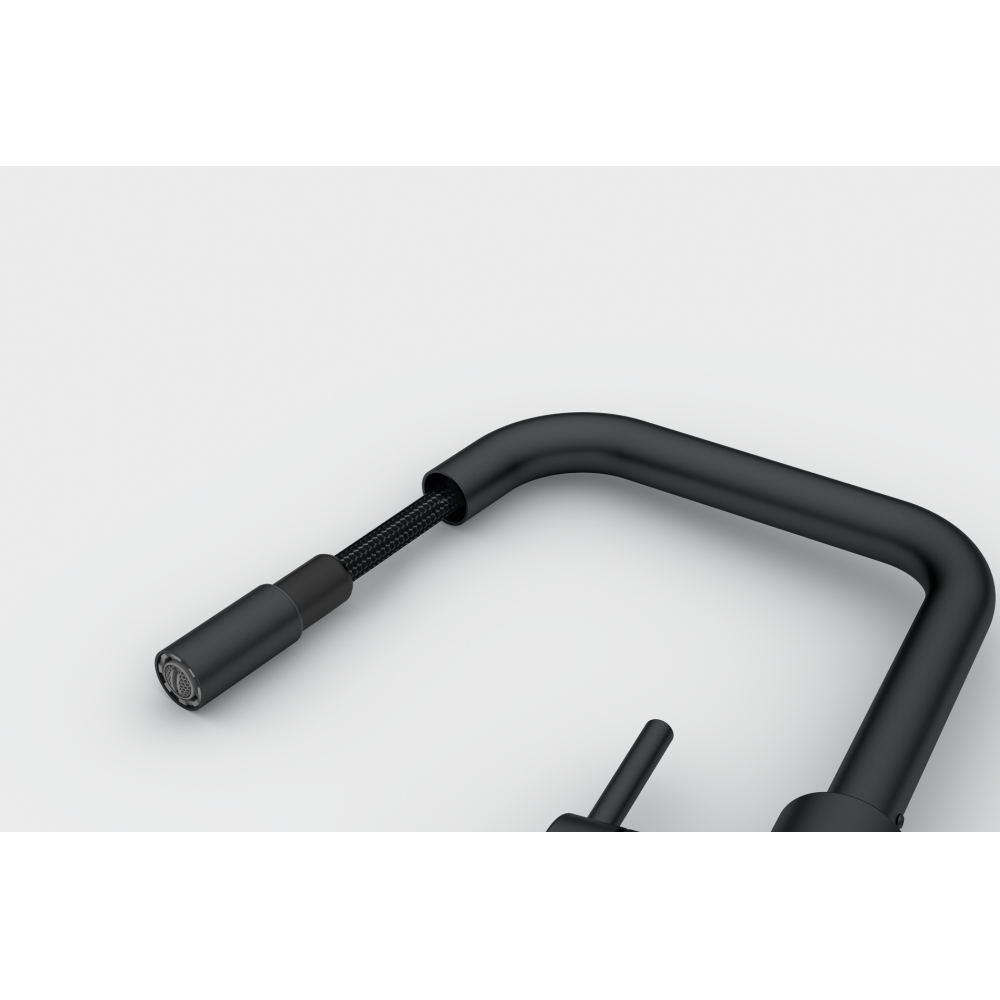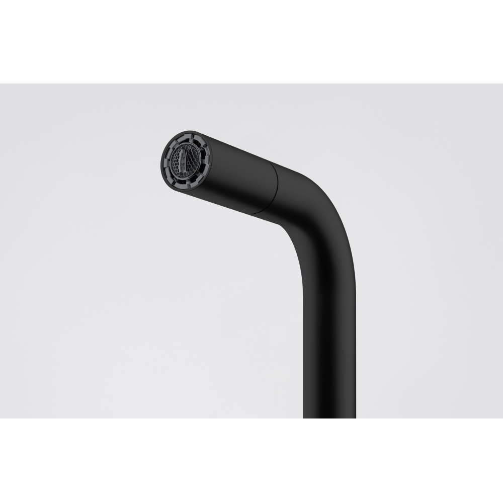 Otočná 360°. S vytahovací koncovkou osazenou perlátorem. Opletená sprchová hadice 150 cm. Připojení Hadičky 45 cm. Průtok vody 8,5 l/min. (3 bar).
