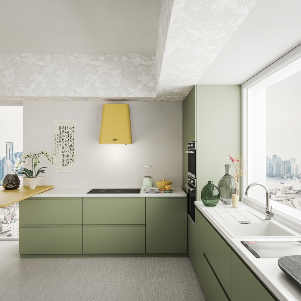 Dotaz na produkt Na splátky ještě dnesKomínový odsavač par Smart Deco. Provedení žlutá (NCS S 2050-Y20R, RAL D2-80 70 50). Energetická třída A. Ovládání pomocí jediného knoflíku. 3 Stupně výkonu. Sound Pro. Pozor! Pro verzi s vnějším odtahem je nutno objednat teleskopický komínek.