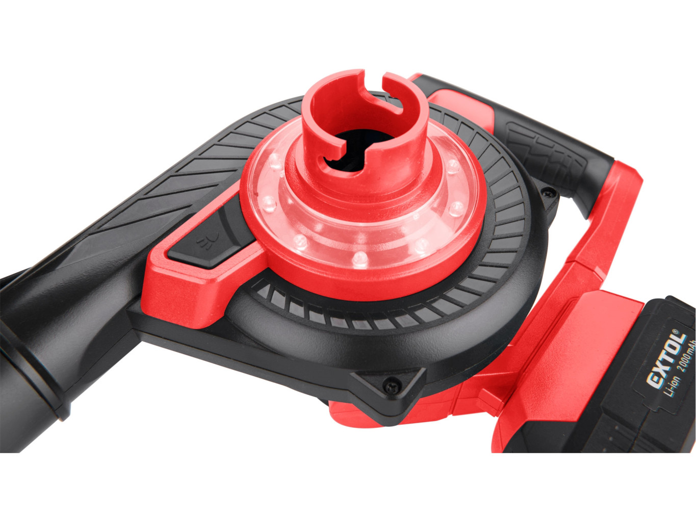 Dotaz na produkt Na splátky ještě dnesAku fukar/vysavač 2v1 lze jednoduše přenastavit pro použití jako fukar, nebo jako vysavač se sběrným vakem. Fukarem lze z venkovních ploch proudem vzduchu komfortně odstranit např. zbytky trávy po sekání trávníku, piliny po řezání dřeva, suché jehličí či listí apod. Po přenastavení fukaru na vysavač se sběrným vakem lze vysát pevné částice např. piliny, jehličí a drobné listí z terasy, chodníku, v rozích apod. Sběrný vak lze snadno odejmout a vysypat. Stroj je vybaven regulací průtoku vzduchu dle potřeby a LED světlem pro nasvícení pracovního místa, což je velmi užitečné pokud potřebujete něco vysát v rohu. Když připojíte k fukaru přiložené nástavce, můžete ho použít pro nafukování lehátek, bazénů, kánoí, stanů apod. Díky zajímavému designu je stroj velmi malý a jednoduše přenosný. Pro běžnou práci dostačují jeden nebo dva 2000mAh akumulátory, které můžete rychle nabít v rychlonabíječce, pro náročnější nebo delší práci doporučujeme větší akumulátory s kapacitou 4000–8000mAh. Akumulátor má indikátor nabití a lze použít ve všech typech nářadí řady EXTOL SHARE20V. Díky použité Li-ion technologii je ho možné kdykoliv dobíjet, aniž by se tím snižovala jeho kapacita. Li-ion akumulátor ztrácí energii vlivem samovybíjení velmi pomalu a vydrží dlouho nabitý a připravený k použití.