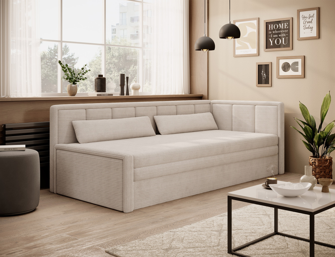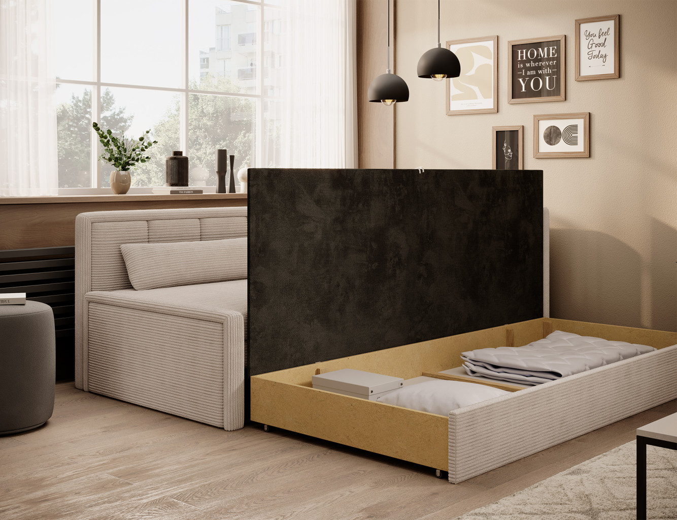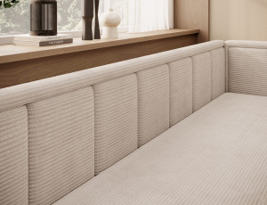 Dotaz na produkt Na splátky ještě dnesRozkládací pohovka Fulgeo je řešením navrženým pro náročného moderního uživatele. Nabízí nejen minimalistický a esteticky příjemný tvar, ale také funkční skládací systém, který vám umožní rychle a efektivně ji přeměnit na pohodlnou postel. Tato varianta je ideální pro garsonku, obývací pokoj s kuchyňským koutem nebo pokoj pro mládež. Sedák je vyplněn polyuretanovou pěnou T2540, zatímco opěradlo obsahuje polyuretanovou pěnu T2130. Nabízí snadno použitelnou funkci spaní a prostorný úložný prostor na ložní prádlo. Spodní úložný prostor pomáhá udržovat textilie organizované, díky čemuž je proces stlaní postele mimořádně hladký. Model Fulgeo je čalouněn elegantní velurovou látkou s jemnou tkanou texturou, která se jemně třpytí pod světlem. Tento materiál se nejen pyšní krásným vzhledem, ale také vysokou odolností proti tření, oděru a žmolkování. Navíc při vystavení světlu nebledne, takže si jeho bezchybné kouzlo na svém novém nábytku budete moci užívat po mnoho let! Látky: Jarell 18