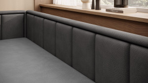 Dotaz na produkt Na splátky ještě dnesPohovka Fulgeo je řešení navržené s ohledem na náročného moderního uživatele. Nabízí proto nejen minimalistický a oku lahodící tvar, ale také funkční rozkládací systém, díky kterému můžete celou pohovku rychle a efektivně proměnit v pohodlnou postel. Tento produkt se bude perfektně hodit do garsonky, obývacího pokoje s kuchyňským koutem nebo do pokoje pro teenagery. Sedák tohoto kusu nábytku je vyplněn polyuretanovou pěnou T2540 a opěradlo polyuretanovou pěnou T2130. Má snadno použitelnou funkci spaní a prostorný úložný prostor na ložní prádlo. Spodní přihrádka pomáhá zkrotit nepořádek mezi prostěradly a povlaky na polštáře, takže proces ustlaní postele je rychlý a efektivní. Model Fulgeo je vybaven mimořádně elegantním čalouněním. Je vyroben výhradně z velurové látky s jemnou, pletenou strukturou, která se pod světlem jemně třpytí. Tento materiál je kromě krásného vzhledu také velmi odolný vůči tření, oděru a žmolkování. Také nebledne při vystavení světlu. To znamená, že si budete moci užívat nedotčené kouzlo svého nového kusu nábytku po dlouhou dobu! Látky: Poco 4, Poco 10