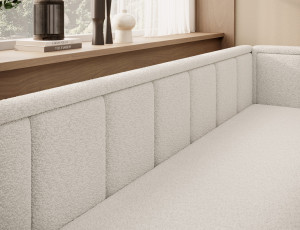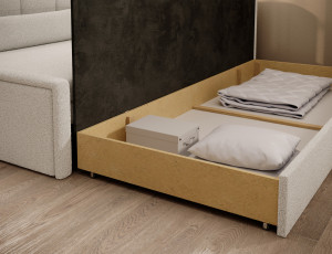 Dotaz na produkt Na splátky ještě dnesRozkládací pohovka Fulgeo je řešením navrženým pro náročného moderního uživatele. Nabízí nejen minimalistický a esteticky příjemný tvar, ale také funkční skládací systém, který vám umožní rychle a efektivně ji přeměnit na pohodlnou postel. Tato varianta je ideální pro garsonku, obývací pokoj s kuchyňským koutem nebo pokoj pro mládež. Sedák je vyplněn polyuretanovou pěnou T2540, zatímco opěradlo obsahuje polyuretanovou pěnu T2130. Nabízí snadno použitelnou funkci spaní a prostorný úložný prostor na ložní prádlo. Spodní úložný prostor pomáhá udržovat textilie organizované, díky čemuž je proces stlaní postele mimořádně hladký. Model Fulgeo je čalouněn elegantní velurovou látkou s jemnou tkanou texturou, která se jemně třpytí pod světlem. Tento materiál se nejen pyšní krásným vzhledem, ale také vysokou odolností proti tření, oděru a žmolkování. Navíc při vystavení světlu nebledne, takže si jeho bezchybné kouzlo na svém novém nábytku budete moci užívat po mnoho let! Látky: Royal 01