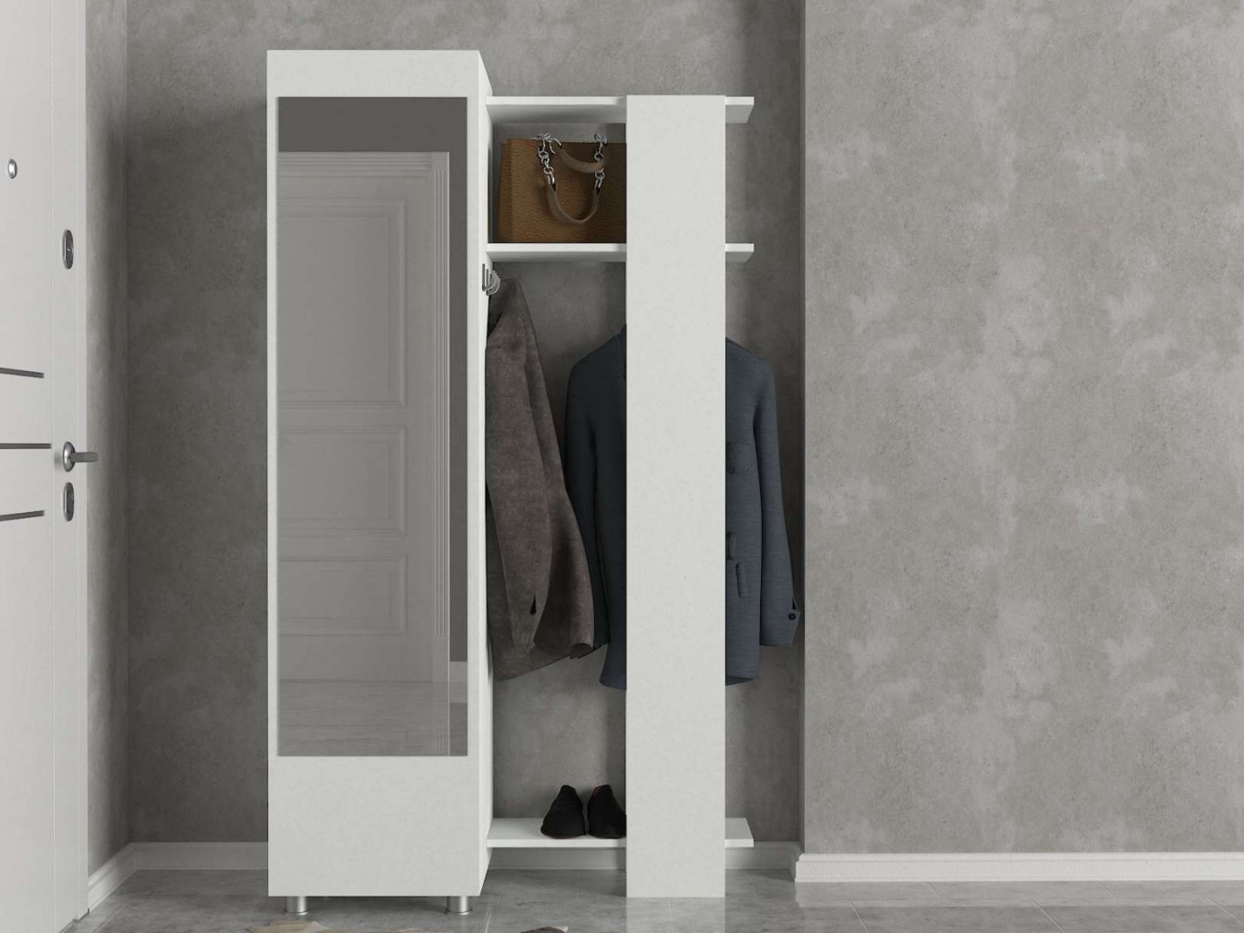 Předsíňová sestava nabízí kombinaci věšáků, zrcadla, skříně a šatníku, což zajišťuje dostatek úložného prostoru pro všechny vaše potřeby. Vyrobena z kvalitních materiálů LTD a skla s tloušťkou 18 mm, zaručuje dlouhou životnost a odolnost. Její čistý bílý design dodává sestavě moderní a svěží vzhled, který snadno zapadne do každého interiéru.