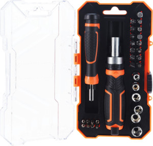 Dotaz na produktTato kvalitní sada obsahuje ráčnový šroubovák, mini šroubovák a širokou škálu bitů, ideální pro různé opravy a montážní práce. Je to skvélé vybavení pro domácí dílnu i profesionální použití.
