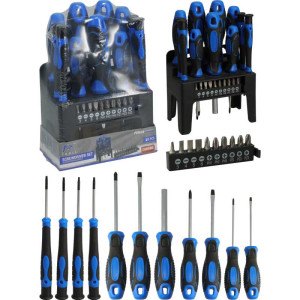 Přednosti: kompaktní a přehledná sada vhodná pro domácí i profesionální použití, praktický držák a magnetické bity zajišťují snadnou práci se šrouby.