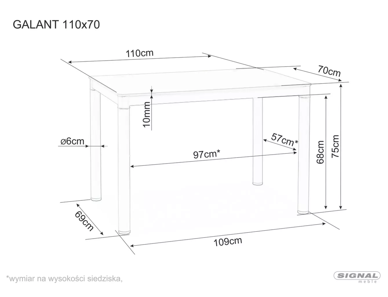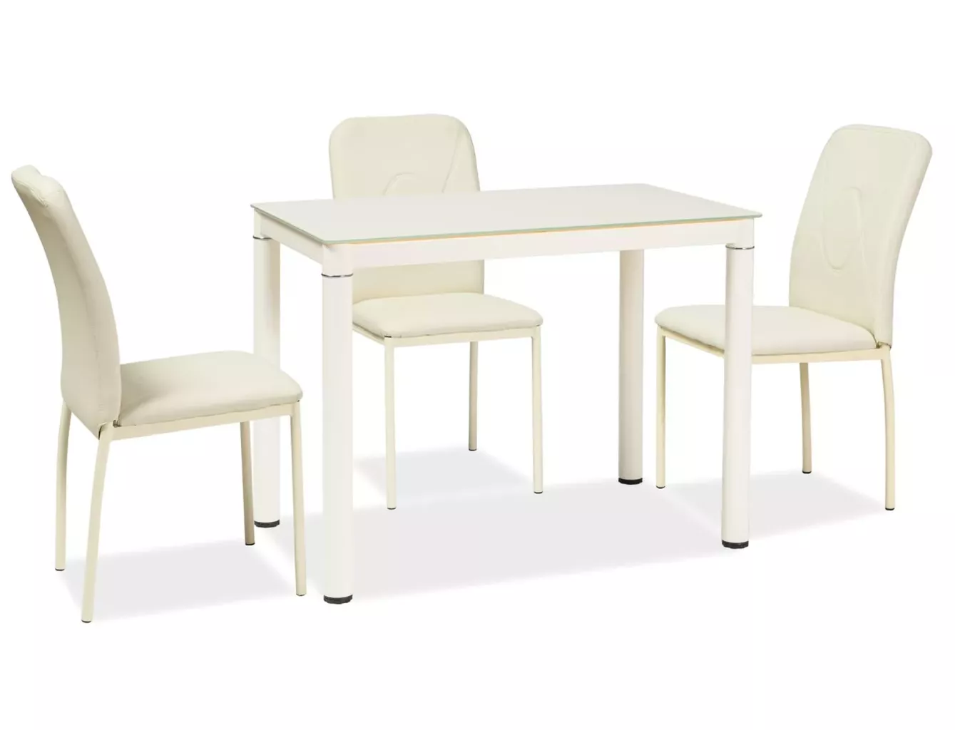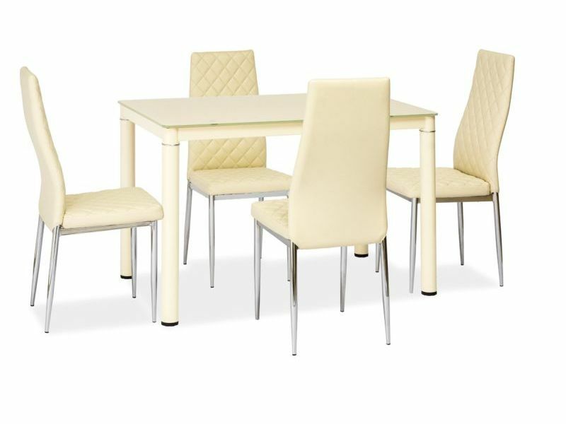 vrchní strana: tvrzené sklo, rám: lakovaný kov, barvy: krémová