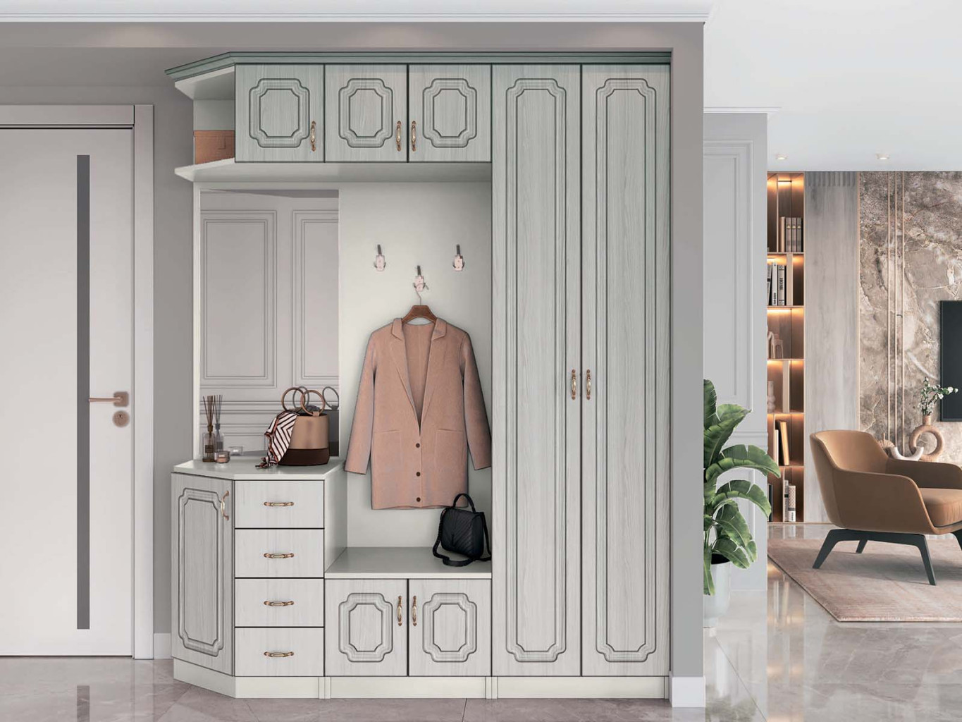 Díky promyšleně řešenému úložnému prostoru nabízí dostatek místa na oblečení, obuv i drobnosti, které potřebujete mít vždy po ruce. Sestava obsahuje šatní skříň, věšáky, zrcadlo, botník a praktické skříňky, které dohromady tvoří funkční a ucelený celek.