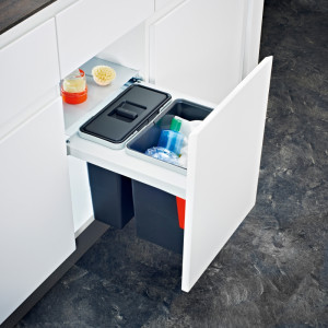 Dotaz na produkt Na splátky ještě dnesČelní výsuv. Min. montážní prostor 412 × 399 × 375 mm. Barva šedá. 2 Koše (1× 12 l, 1× 18 l). 1× Víko na 12 l koš (133.0200.695) v ceně koše. Kovová police nad košem v ceně koše. Součástí koše je plnovýsuv s tlumením, které zaručuje tichý dojezd. (Výsuv od firmy FGV).