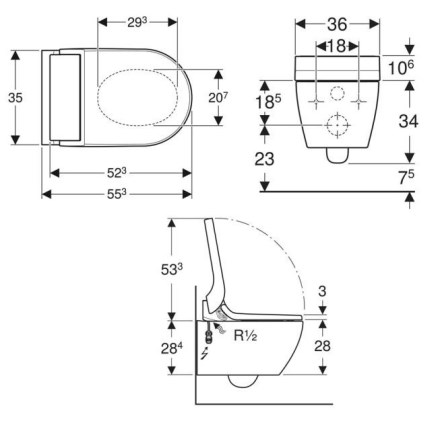 - kompatibilní s aplikací Geberit Home (nastavení teploty vody, teploty osoušení a teploty ohřevu WC sedátka)