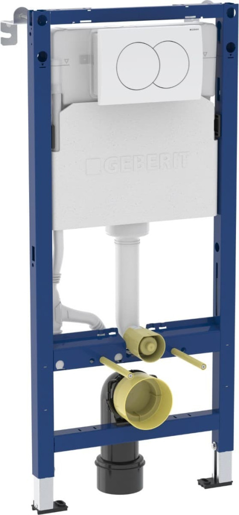 Závěsný set WC - sada obsahuje modul Geberit Duofix, 112 cm, se splachovací nádržkou pod omítku Delta 12 cm, soupravu pro kotvení do stěny a plastové ovládací tlačítko Geberit DELTA 01 v bílé barvě.
