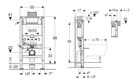 - rám připravený pro podpěry u WC keramik s malou opěrnou plochou