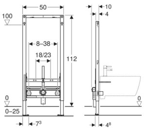 • rozteč upevnění závěsného bidetu 18 nebo 23 cm